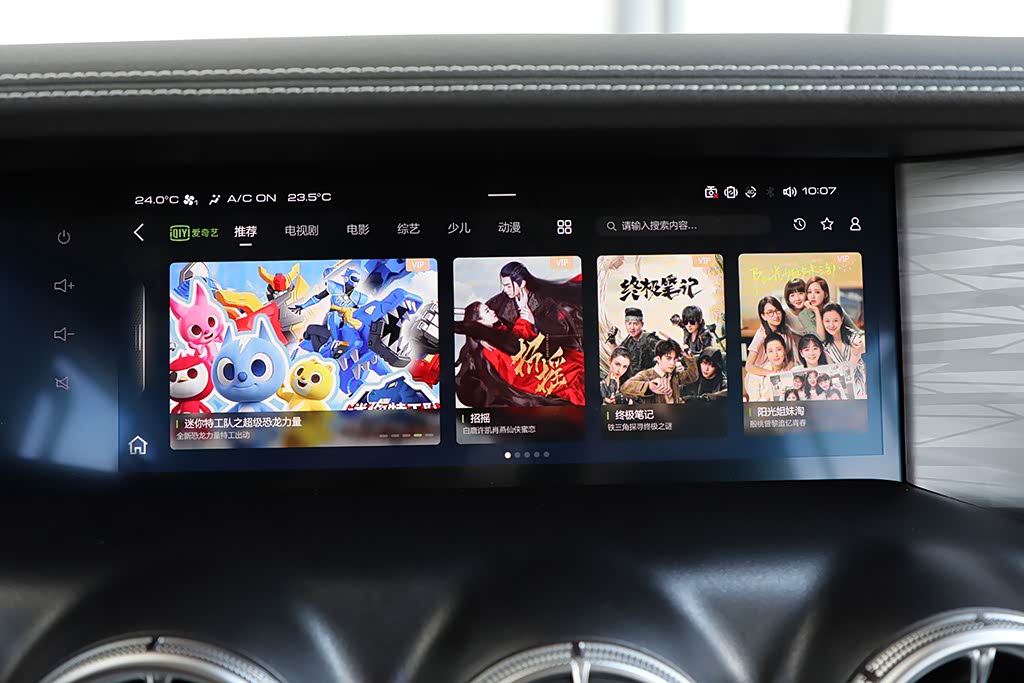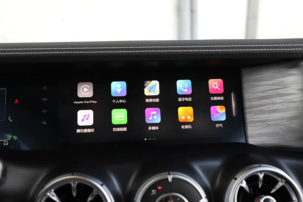 12.3英寸的触控屏幕很有科技感,内部UI设计、动画切换、反应速度、画面质感,均已超越目前豪华品牌水准。分辨率可达到1920*720,而且该屏幕还有防眩目、防反射的处理。