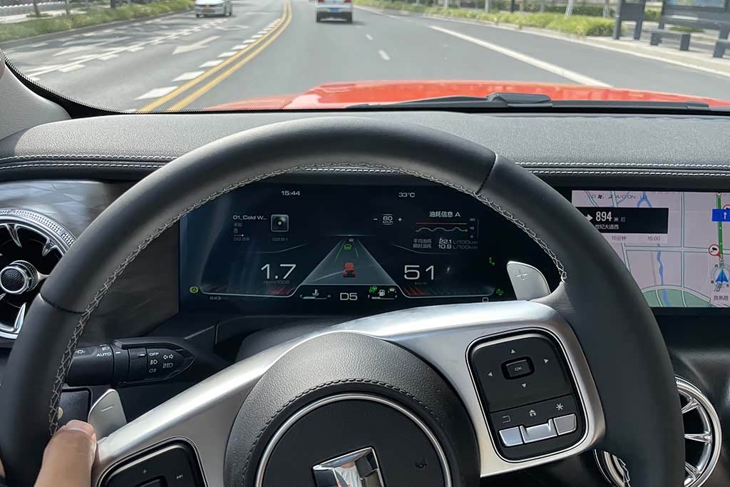 作为城市版车型,它还搭载了一套L2+级别的驾驶辅助系统。通过方向盘左下方的拨杆便可以操作。实际使用后,我发觉还是比较好用,很智能化。你只需要设定好速度、距离就可以了。车辆会根据前方雷达的监控精准的把控车辆。尤其是在高速巡航时候,这项功能还是比较实用,完全可以解放你的双脚。而且它可以实现自动增减速度,甚至刹停。只不过你的双手需要握好方向盘,如果手离开方向盘30秒左右,系统将提醒驾驶员,如果驾驶员没有任何措施,系统将自动切断自动驾驶辅助