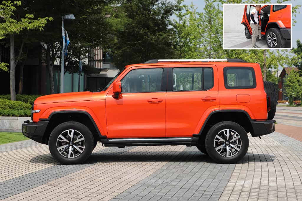 车身侧面与大多数硬派越野车保持一致,上窄下宽的设计看起来很稳健。与越野版最大的区别在于城市版车型轮眉、外后视镜也采用与车身同色的设计。而且它还配备了电动踏板,这对于日常上下车可以起到很便捷性的作用。