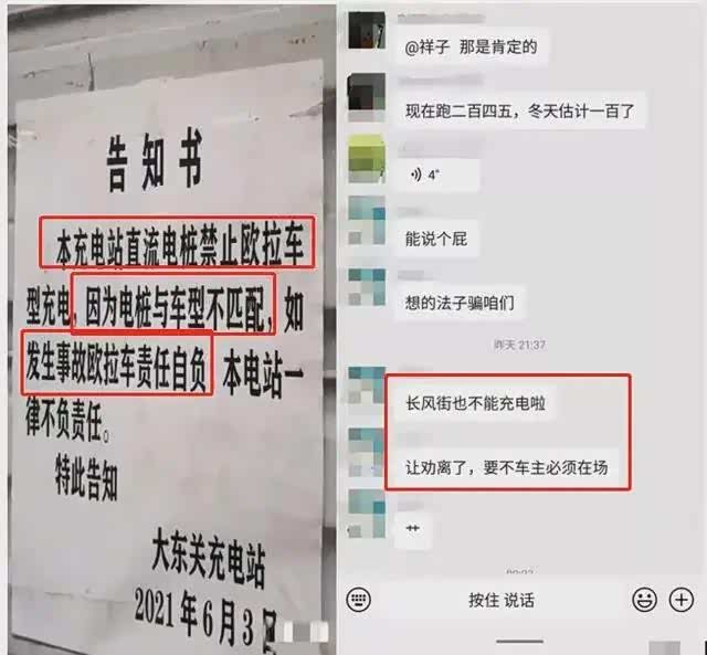 在“黑名单”事件之外,还有网约车司机发布聊天截图显示,长风街的充电站对欧拉车主进行劝离,如若要充电要求车主必须在场。