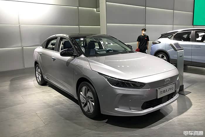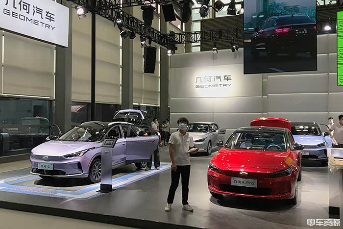 本次粤港澳车展上,在几何汽车的展台我们能看到几何A、几何A Pro以及几何C三款车型。其中,几何A Pro是针对旗下首款车型几何A升级的版本。外观方面,几何A Pro基本延续了此前的“多维流动生命体”设计理念,但在细节方面与老款几何A有着诸多不同。前脸依然保留了封闭式进气格栅和量子银盾车标,但两侧狭长的大灯组加入了熏黑设计,看起来十分个性,辨识度颇高。