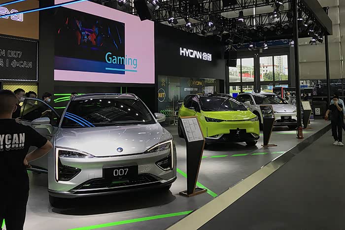 我们能看到在广汽蔚来的展台上有两款车型,合创007和即将上市的合创Z03。在2021上海车展期间,合创Z03已正式亮相,新车也已开启2999元“创势定”、299元“开玩定”两项盲订活动。另外,按照官方说法,目前“Z03”只是该车的代号,未来可能还会有新的正式名称公布,该车定位纯电SUV,续航里程超600公里,车型预计售价13-15万元。