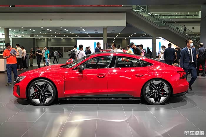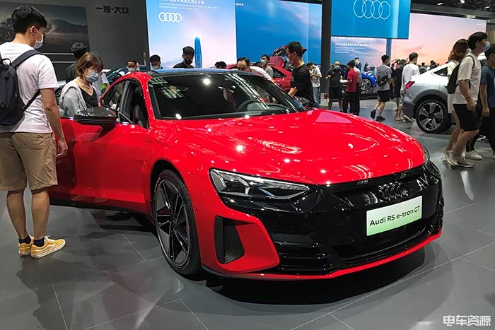 在奥迪专馆我们能看到三款奥迪新能源车型的亮相,有最吸睛的奥迪RS e-tron GT以及奥迪e-tron、奥迪e-tron Sportback。奥迪RS e-tron GT是奥迪推出的第一款纯电动GT跑车,这款车将在年内正式引入国内市场。该车型诞生于奥迪与保时捷共同研发的J1纯电动平台,跟Taycan是表亲。车身尺寸方面,车长接近5米,比Taycan略长一点。