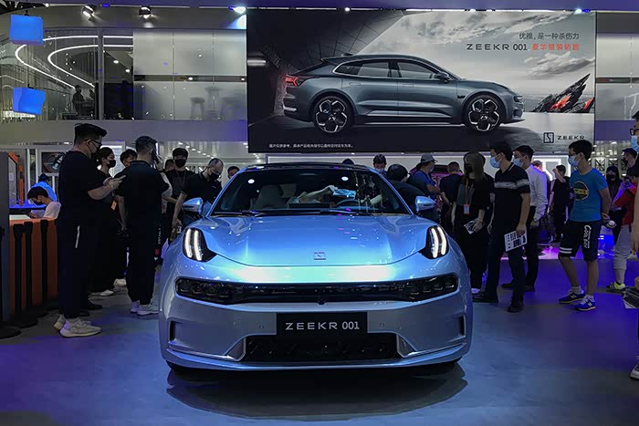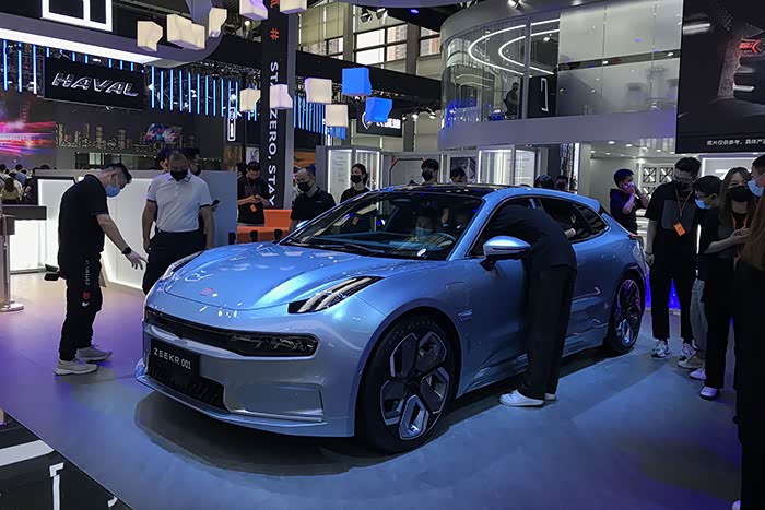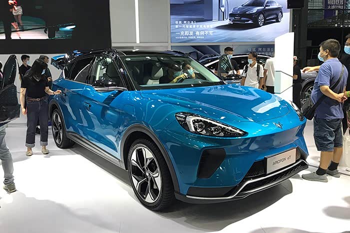 在极氪的展厅我们能够看到极氪001的亮相,新车采用了家族化设计,极氪001的车头造型扁平动感,风阻系数仅为0.23,整体视觉效果颇具新潮、时尚气息,配合着机盖上隆起的线条,使前脸看上去更具运动感和肌肉感。极氪001分别搭载86kWh和100kWh的三元锂电池,NEDC续航从526km-712km不等,0-100km/h的加速最快仅需要3.8s。