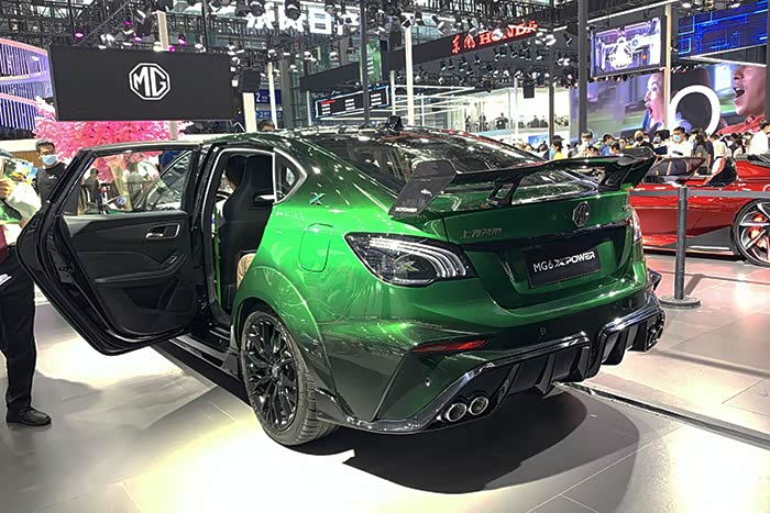 车展期间,名爵品牌带来了旗下改装品牌MG XPOWER的首款量产车型——MG6 XPOWER,该车搭载1.5T插混系统,正式售价为19.98万元。名爵6 XPOWER基于名爵6插混版打造,设计方面参考了MG TCR赛车。这款车外观部分采用“骐骥绿”色手工金属漆,配合黑色渐变风格,十分张扬,具有很高的辨识度。