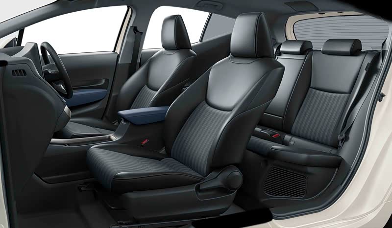 大改款普锐斯的内饰上,舍弃了过去采用的中置仪表盘设计,将液晶数字仪表盘移到方向盘正后方,中控台上方则放置了高达10.25寸的悬浮式触控屏幕。落地式排挡杆也改为悬浮式设计并位于中控台下方,而原来的位置变成了用来放置手机且提供了滑盖式托盘。副驾驶座前方除了有手套箱,打开上方的皮革外盖还可发现里面还有一处储物空间,室内多处采用了合成皮革包裹,包括了中控台、内门板及门板扶手以及前后中央扶手处。
