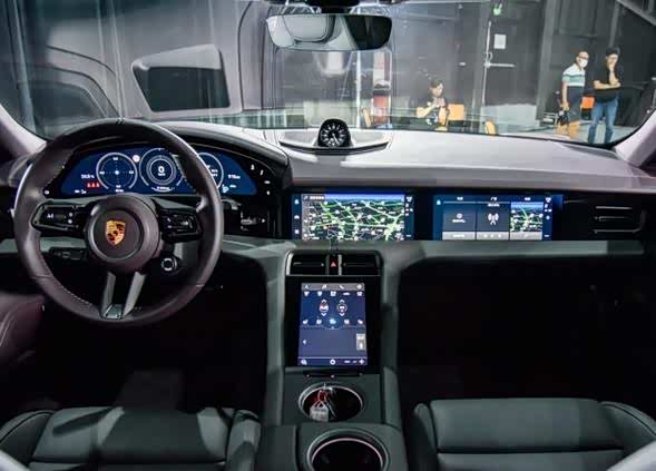 进入保时捷Tayacn车内,同样是满眼大屏幕,新车取消了家族经典5连仪表,而是选择搭配一块16.8英寸全液晶仪表屏,从辨识度来讲,个人觉得有一个较大的飞跃。中控屏幕尺寸在10.9英寸,在其下方配备一块8.4英寸辅助屏幕,主要用来调整空调以及查看充电功能。如果有闲钱的情况下,副驾驶位置可以再选装一块10.9英寸屏幕。车顶则配备一块全景玻璃天幕,并没有配备遮阳帘,主要是因为玻璃隔热性不错,即便温度达到30度,基本也没有太大影响。