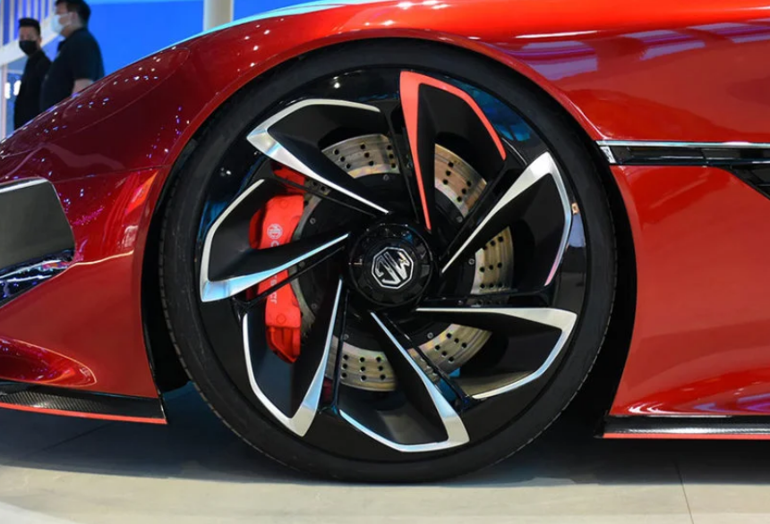 从车身侧面看,名爵Cyberster采用了漂亮的腰线设计。官方称为“激光带”的LED灯带贯穿车身侧面,营造出科技感和未来感。车门轮廓紧跟灯带的方向,使整个车身侧面都有很强的冲击力。同时,该车还采用了两级肩部线条,突出了前后轮拱的肌肉感。低矮的车身,加上官方称为“骇客旋刃”的中央锁止高性能轮圈,给这款车带来了十足的运动视觉效果。