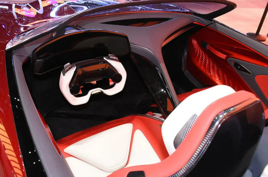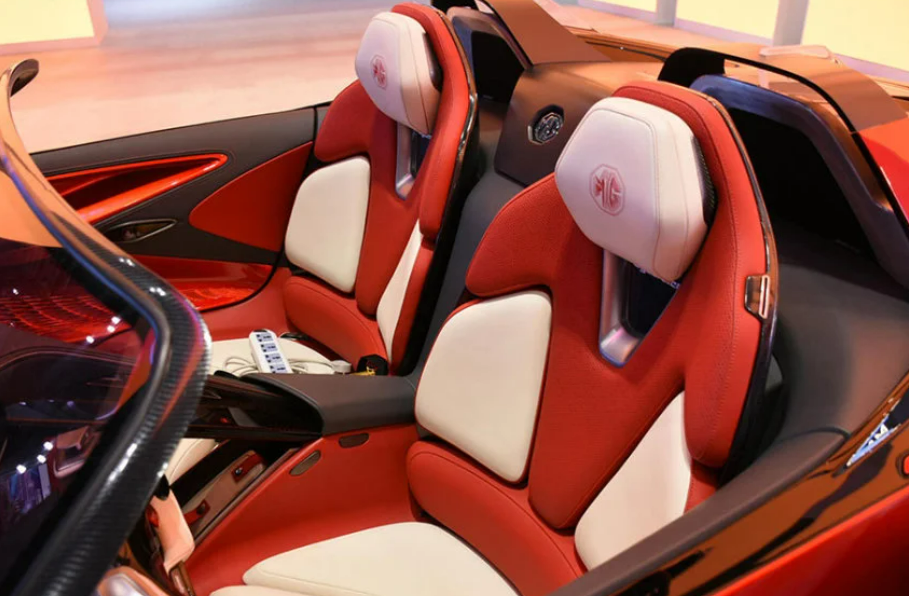 内饰方面,名爵Cyberster采用了官方称为“数字纤维”的设计主题。这辆车的设计很简单。它采用了概念车惯用的赛车游戏手柄、赛车方向盘、红白相间的零重力座椅。色彩搭配非常运动,其余的细节也散发出强烈的科幻感。