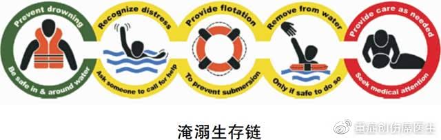 由于改进了急救系统,美国淹溺死亡率已从2000年的每1.45人/10万人降低到1.26人/10万人。欧洲复苏协会提出了淹溺生存链的概念,它包括五个关键的环节:预防、识别、提供漂浮物、脱离水面、现场急救。