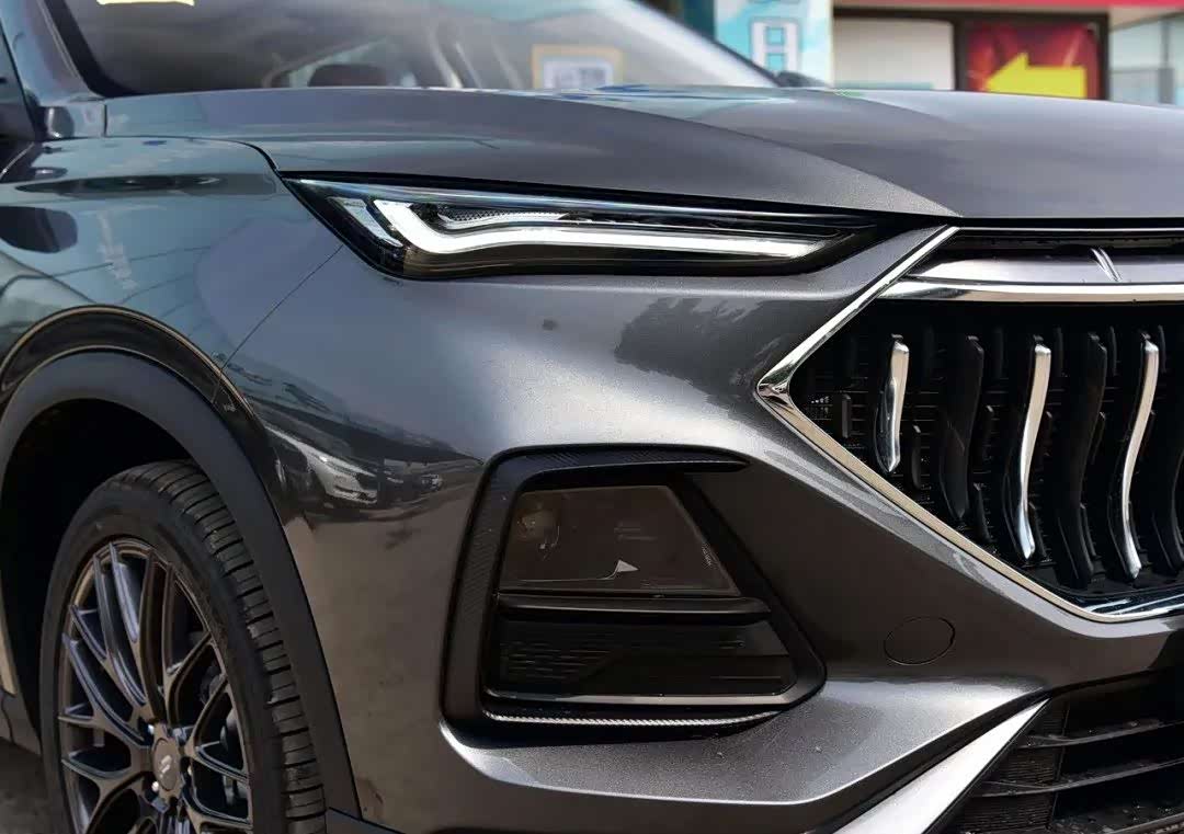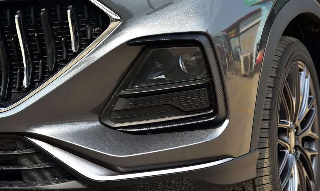 从侧面来看,这辆车的重心是偏向车头的,并且腰线全部都是上扬的造型,D柱的倾斜角度也较大,营造更强的运动。这样的造型跟WEY的VV5类似。