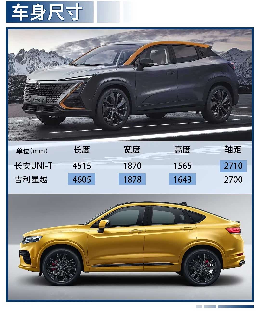 UNI-T是长安UNI系列下的首款车型,同时也是长安品牌全面焕新后的首款车型;而星越则是吉利CMA模块化平台下的产物,同时也是吉利车型陆续转向CMA平台的首款车型,两款车型在设计和“性格”方面都有着较大的区别,而在市场认可度上,两款车都有着不错的销量,可以说势均力敌。