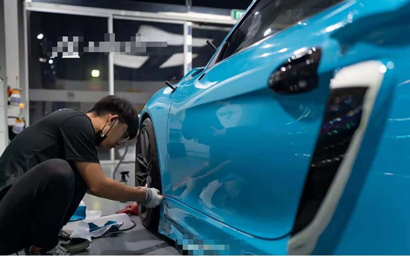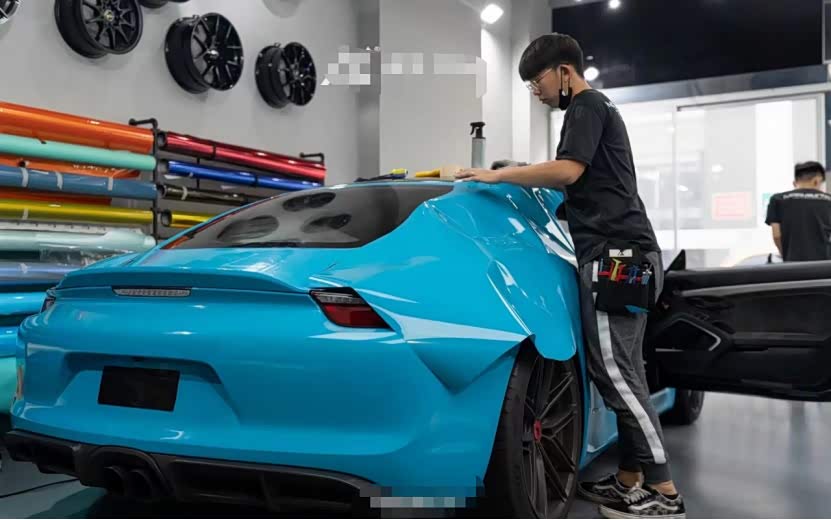 膜呗改色案例:保时捷718 Cayman GT4改色迈阿密蓝 冲击力十足