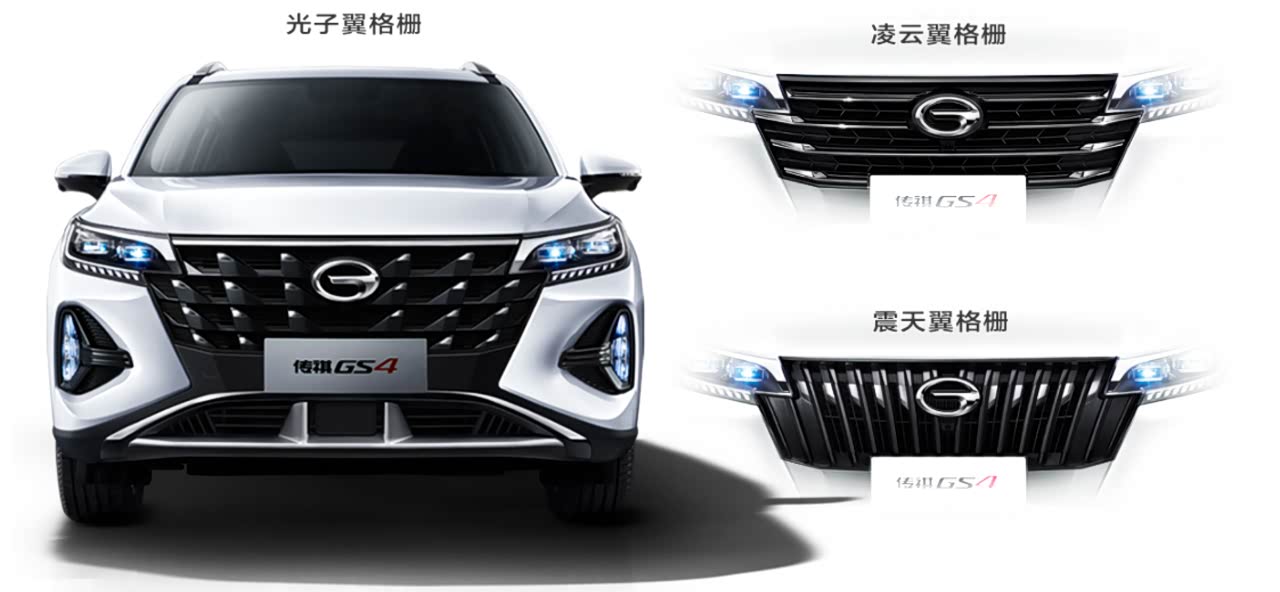 外观方面,新款GS4将原有的震天翼、凌云翼两种格栅进行优化外,还带来了全新设计的光子翼格栅。其设计上模拟数字爆炸中光子扩散的姿态,科技感更强。双模组 LED 灯芯以巡航导弹头为灵感,造型立体精致,点亮效果成双星巡航之势。