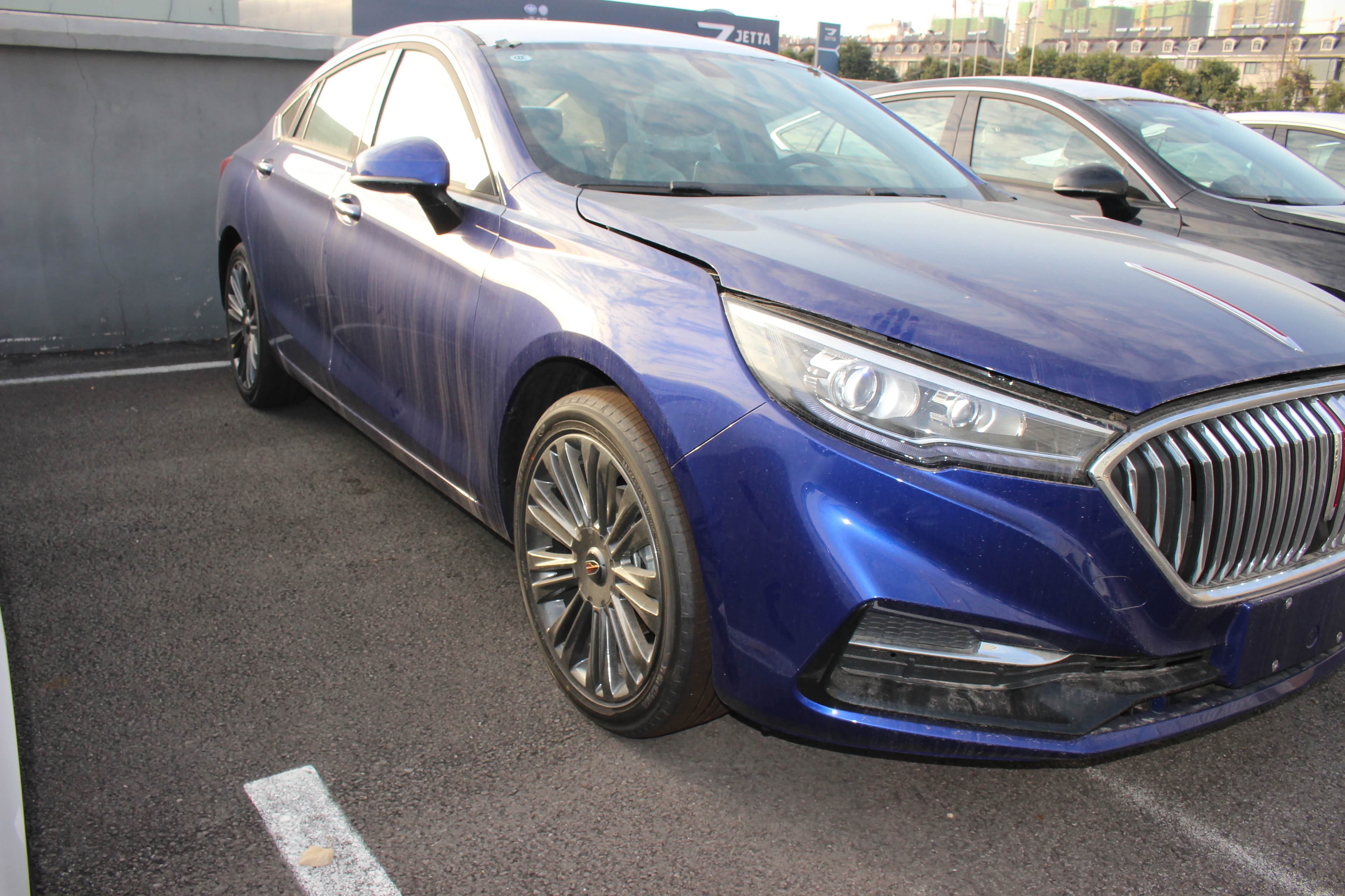 蓝色涂装彰显出优雅大气的气质,车头采用红旗经典的设计语言,大尺寸的进气格栅周边配备了镀铬饰条,中间的直瀑式设计很有辨识度。车头两侧搭载了一款饱满的LED大灯,前脸下的进气口很宽大。车身的姿态是很低趴的,腰线带有上扬的角度,车窗上沿配备了镀铬饰条,密幅式的轮毂很前卫。尾部的造型总体上是很圆润的,两侧的尾灯棱角分明,双出排气显得很动感。