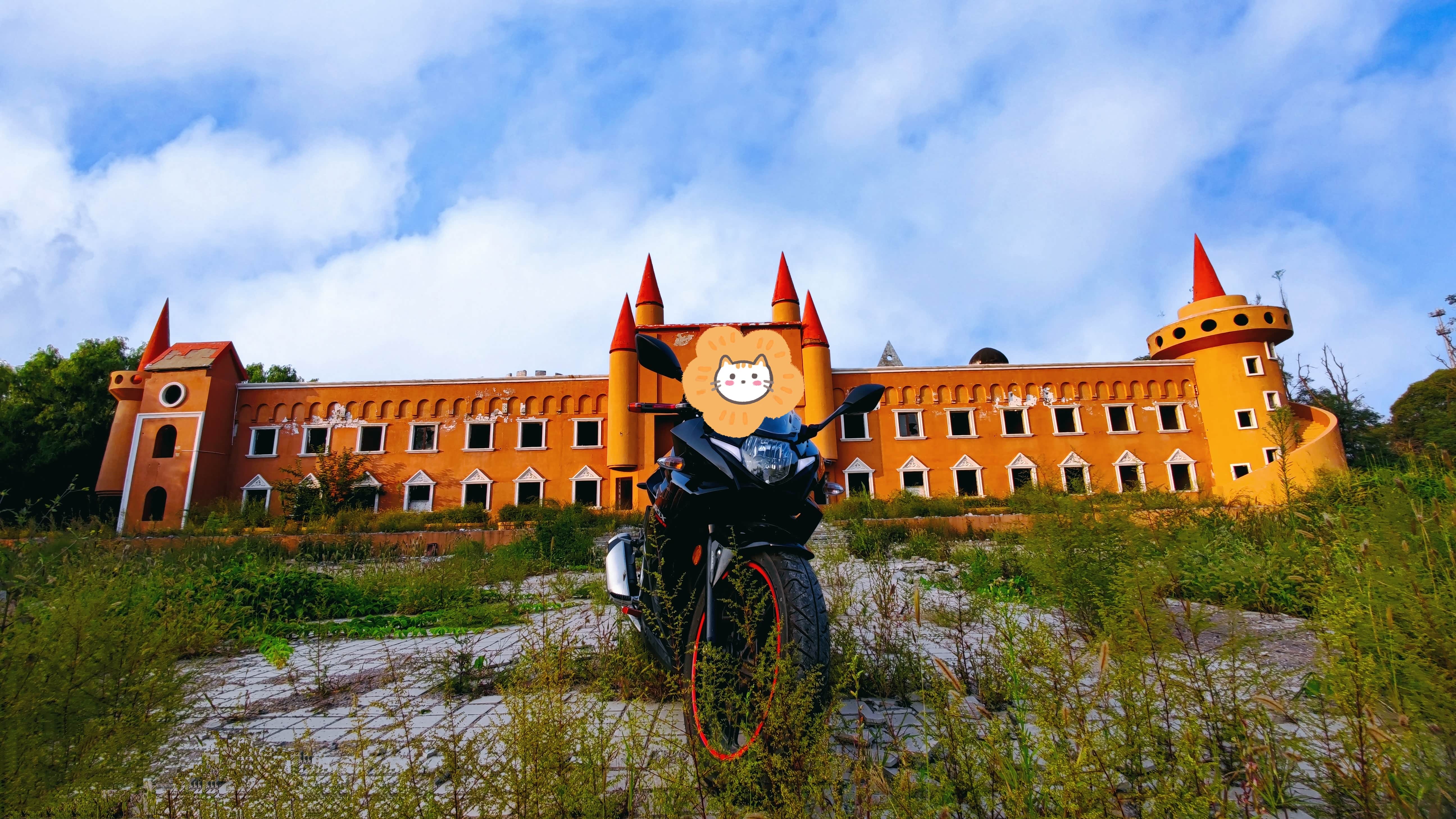 二是在秦皇岛找到了一个废弃的酒店,具体荒废的原因我没有查,有了解情况的可以评论区给留言一波。记忆深刻的原因是那里太适合拍照了,荒废的城堡型酒店做背景,把摩托停在中间,随便仰拍一张都是大片的赶脚,值得一去。