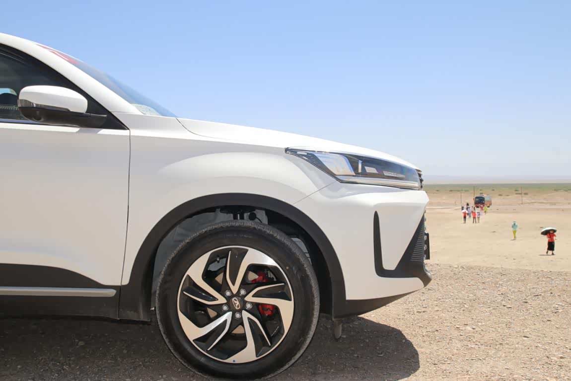 前面说到,此次试驾地点位于甘肃敦煌,试驾当日的室外温度为44℃,且不说高温对于汽车的影响,戈壁以及碎石等非铺装的道路环境对汽车的综合性能一定是个不小的挑战。
