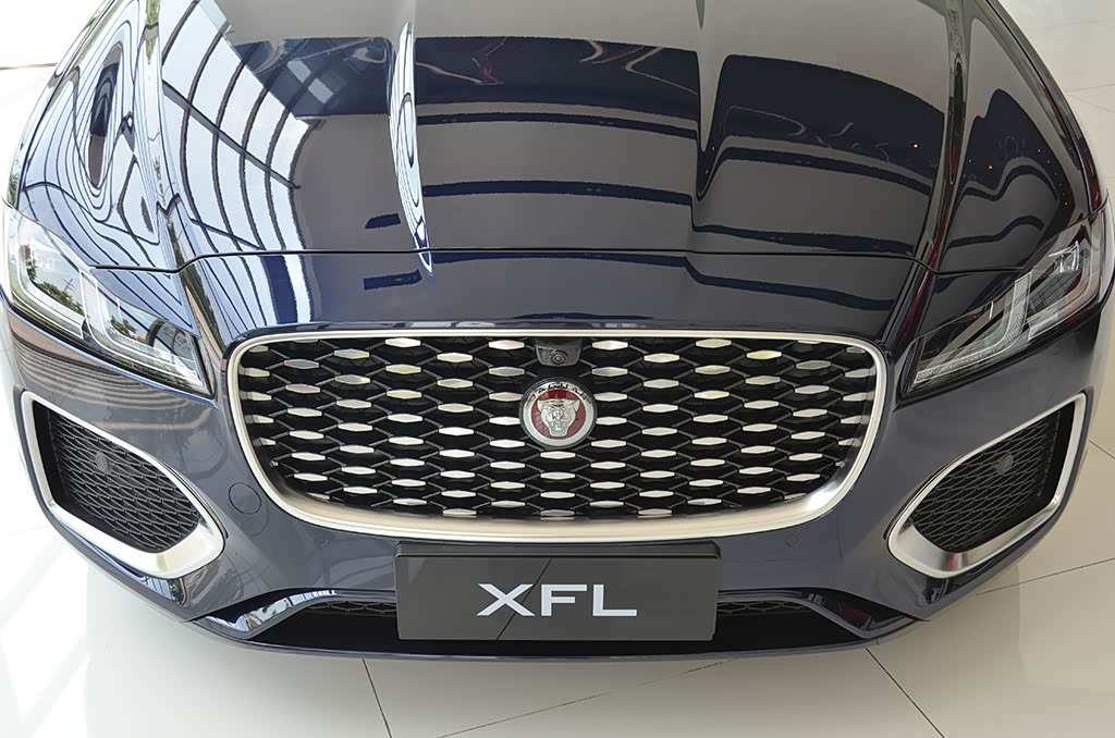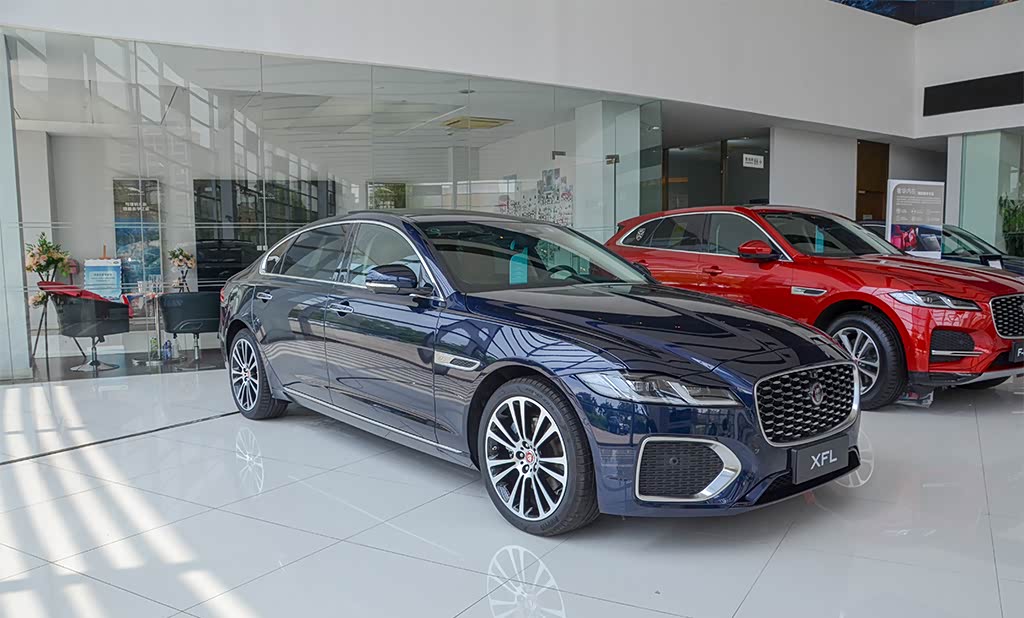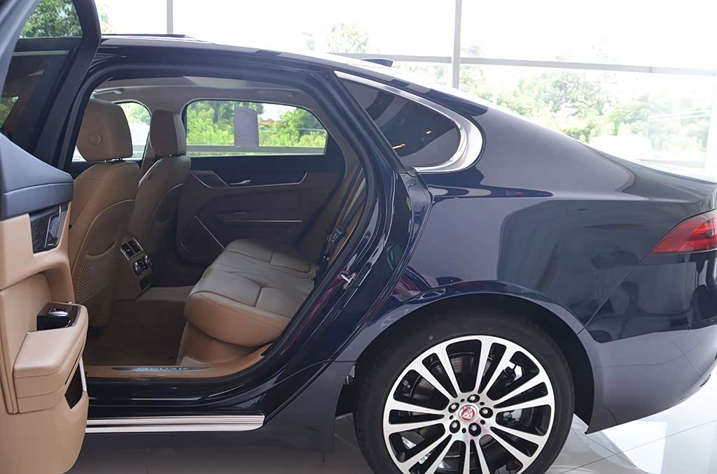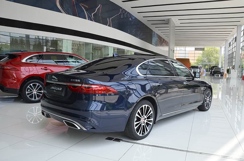 车身侧面,此次新款XFL长/宽/高分别为5102/1880/1456mm,而轴距为3100mm。当然,其车身尺寸是国产加长而来,比起原汁原味海外版车型而言,后排空间确实出色不少,但由于本地化设计后,其整体操控表现也比较一般,主要原因还是在长车身以及较软的底盘悬架等方面,总归要做出取舍。在车侧颜值上,笔者虽然觉得这蓝色已经很好看了,也许是因为笔者直男的关系,但感觉绿色才最配得上英国车气质,“英国绿”才是最优选的经典颜色。