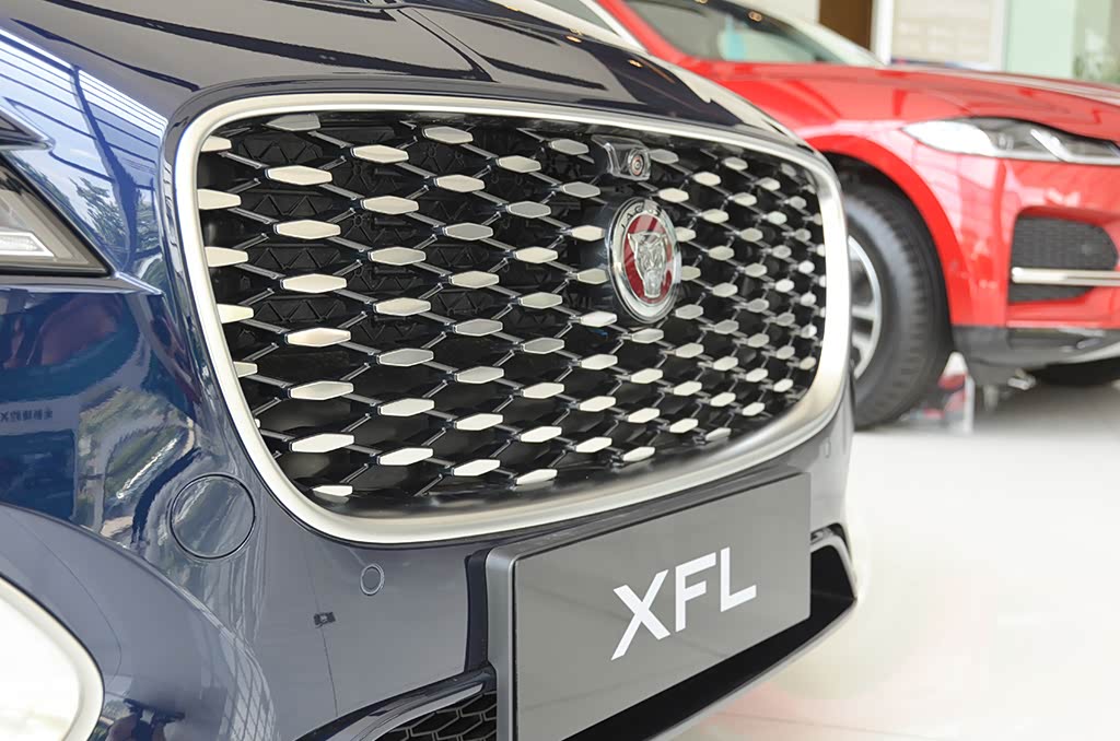 新款XFL为中期改款车型,其采用两种不同前脸设计,分别为豪华版和R-Dynamic运动版,实拍车型为豪华版风格,矩形中网内部配以镀铬点阵式纹理设计,看上去十分大气时尚,加上夸张的下包围造型,进一步展露出动感的姿态。而R-Dynamic运动版则会使用更多黑色元素。