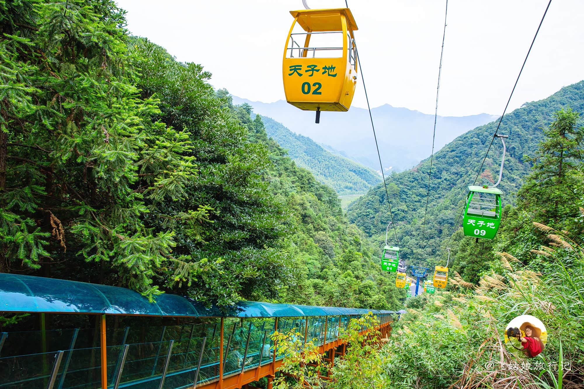 来天子地旅游,可以选择坐缆车上山
