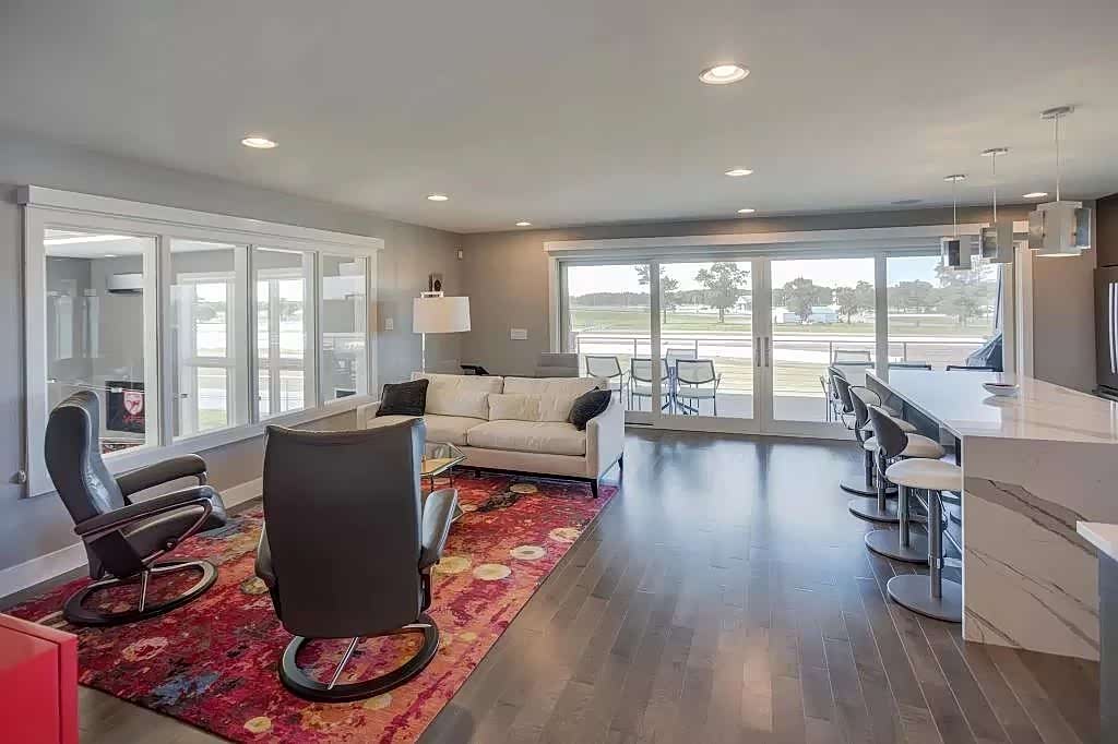 三层休闲空间也配备了一个厨房以及巨大的观景露台,在进行赛车比赛或者活动时可以在这里可以看清楚整条赛道。