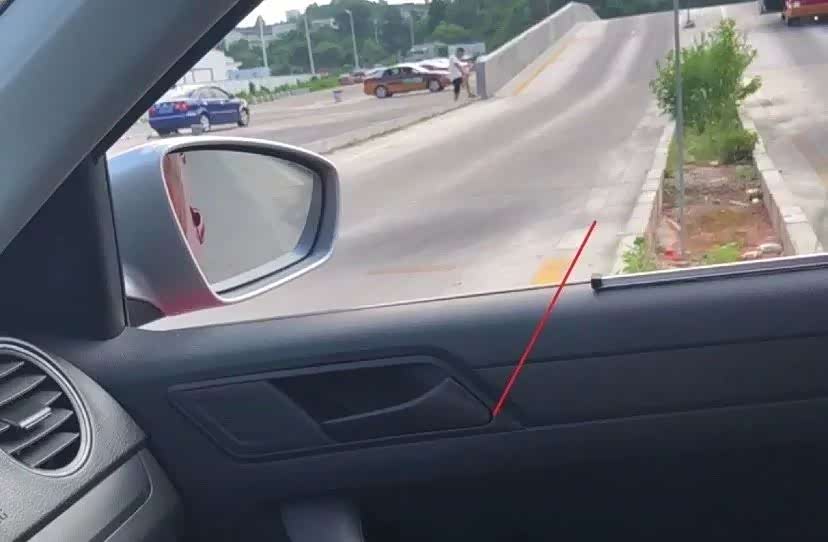 右边门把手尽头位置对齐黄线的时候,往右迅速打满方向盘,打方向盘这个时机取决于我们的车速和打方向盘的速度。如果车速慢方向盘就要打的快,那就到了点再打,如果车速快,就需要提前一点点打方向盘,以实际情况为准。