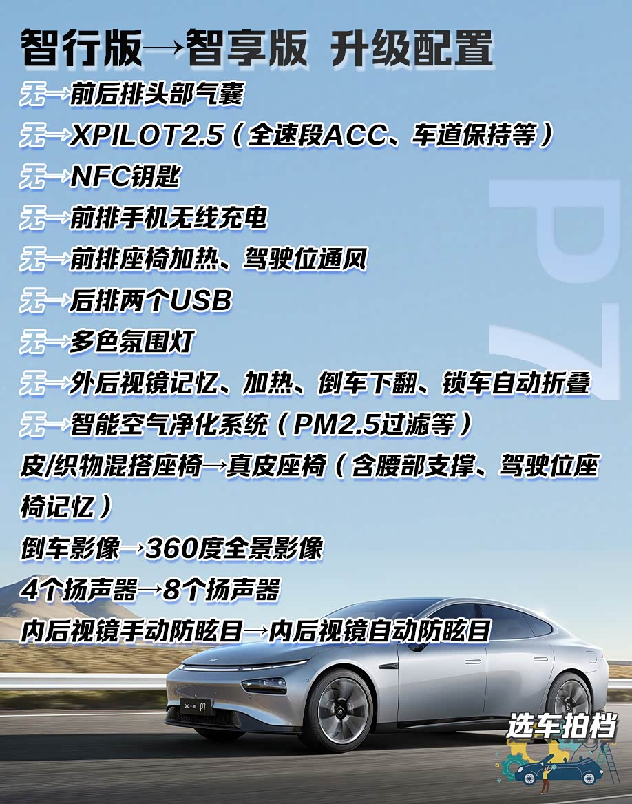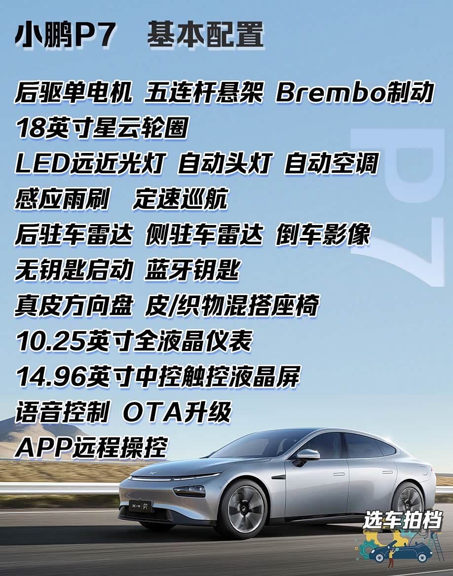 P7的基础配置已经满足20万元中型车的主流配置水准,因此选购的重心要放在几个重要维度上,这里笔者总结出以下几点: