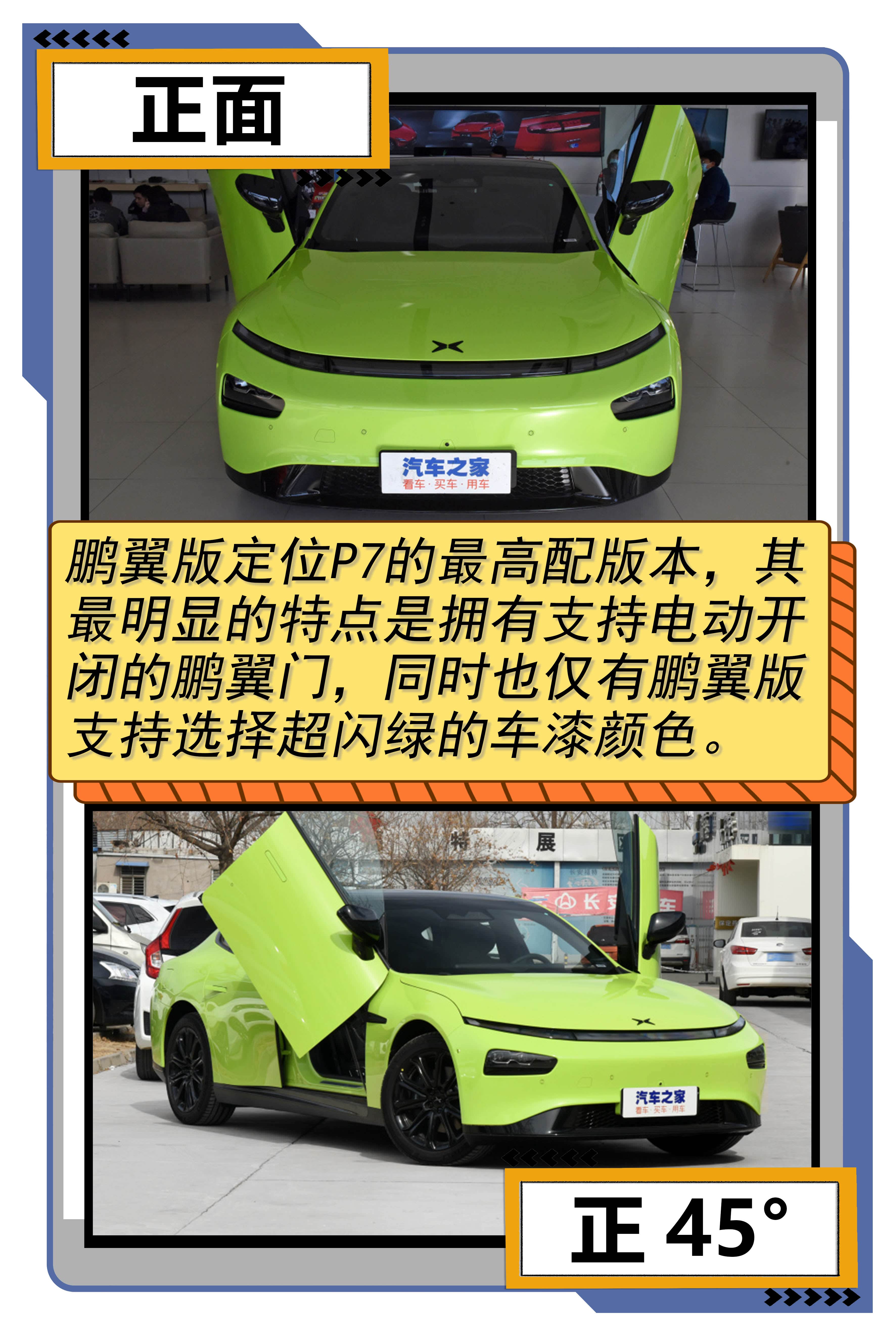 推荐理由:毫无疑问,顶配的鹏翼版稀缺性拉满,独享的超闪绿配色,黑色的运动风格轮毂,拉风的鹏翼式剪刀门都是它的象征,并且双电机和最大容量电池的加持也让它的性能更加出众。与此同时,它全系最高的售价也包含了满配的XPILOT3.0系统以及完整的智能音乐座舱系统,如果预算充足,还是值得购买的。