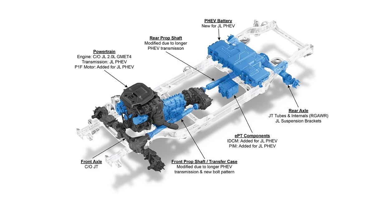 2.0T发动机+电机组合成了混动牧马人的心脏,综合最大扭矩637牛·米,最大功率和V8牧马人392车型一样,单从数据看确实“美如画”,但有一个非常现实的前提,就是满电状态下。众所周知,牧马人车主都有中度以上越野需求。野外的自然环境根本没办法保障随时能充电,更要命的是到达目的地后基本是馈电状态,这时整车的功率就就会大打折扣,即使开启“电量保持”也是杯水车薪。