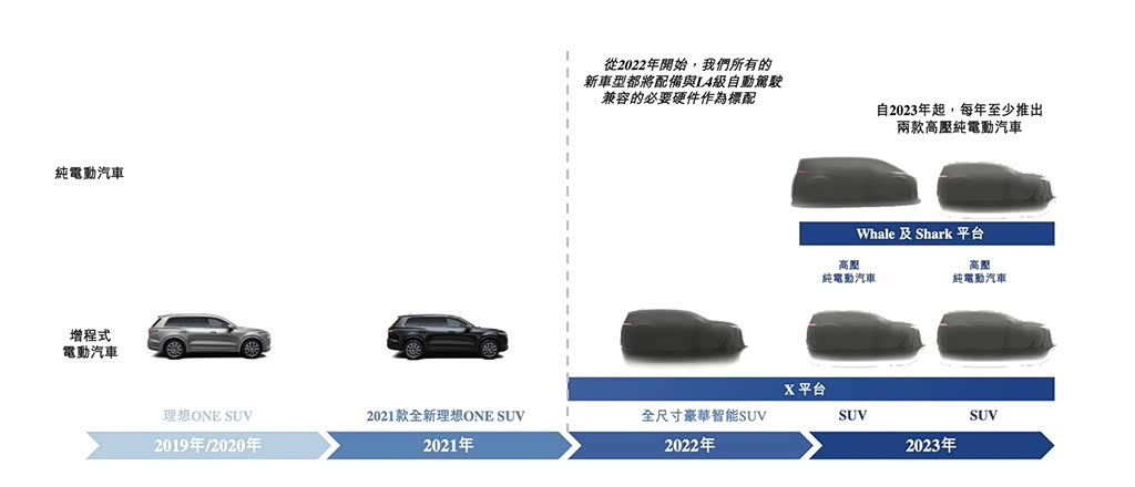 日前,理想汽车官方公布了未来新产品的规划。据悉,理想汽车计划在2022年推出一款全尺寸的的豪华增程式SUV,而在2023年陆续推出两款纯电动SUV车型。并且,自2022年起,理想汽车所推出的新车型都将标配与L4级别自动驾驶兼容的硬件。