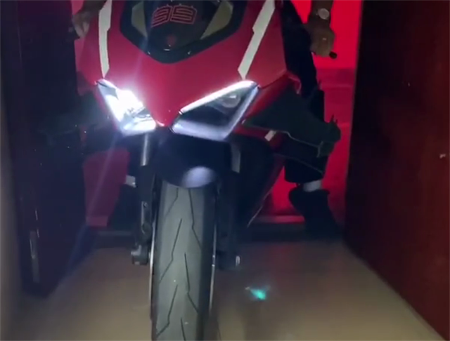 据悉,该款杜卡迪是一辆杜卡迪Superleggera V4,车价7位数,定位趴赛,采用碳纤维轮毂和碳纤维车架,降低车重,前后自带ABS系统,轮毂尺寸为17寸,全车空气动力学原理优秀,车身还自带定风翼。