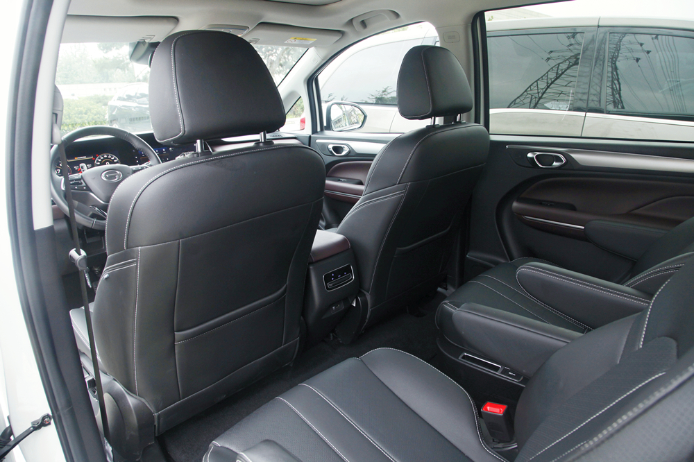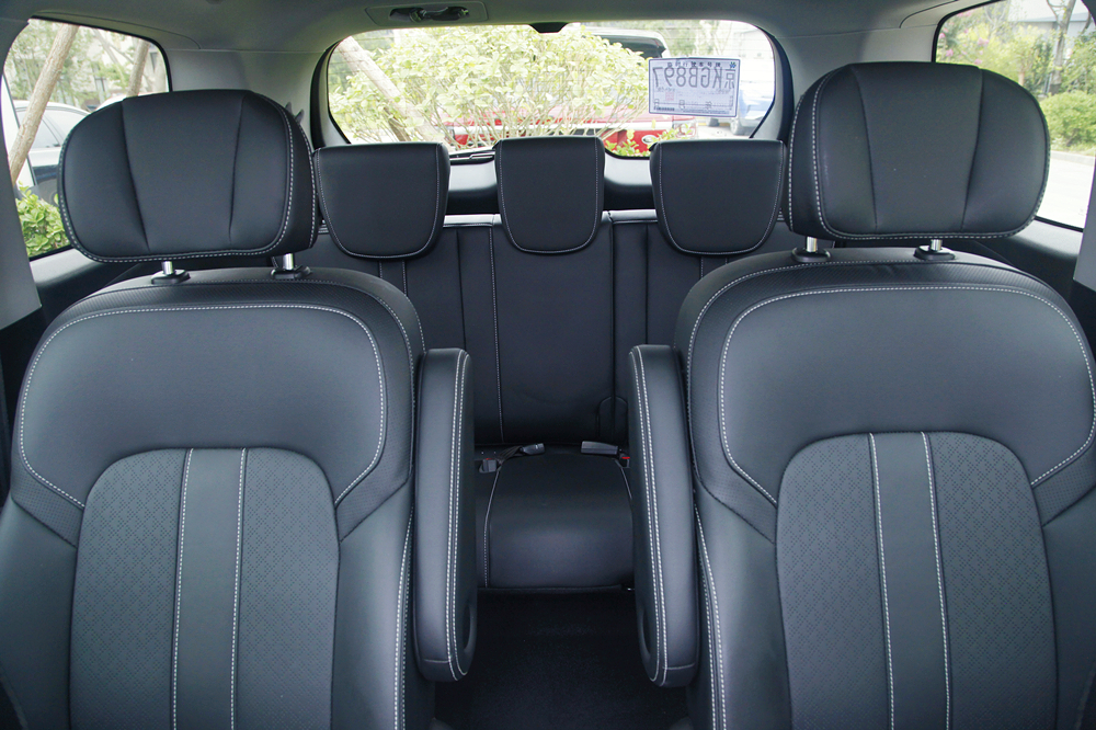 第二排车厢内高(底台到车顶)为1.25m,身高较高的乘员乘坐也不会顶头。当然,第三排提供860车内横向宽度,还在在两侧配有水杯架以及USB接口,增加了第三排的实用性。