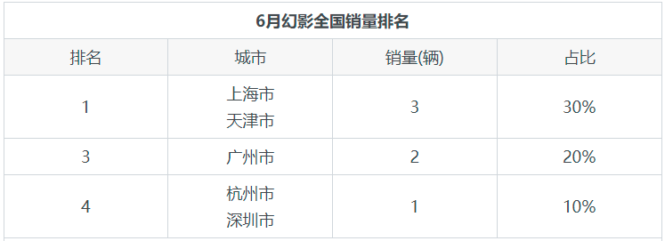 6月幻影全国销量分布情况,上海市占比30%