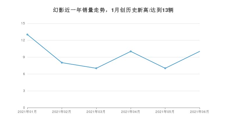2021年6月, 幻影销量为10辆,同比持平,环比增长42.86%。1-6月份,幻影销量为55辆,同比增长19.57%。在最近1年中,幻影销量在2021年01月达到最高,销量为13辆。