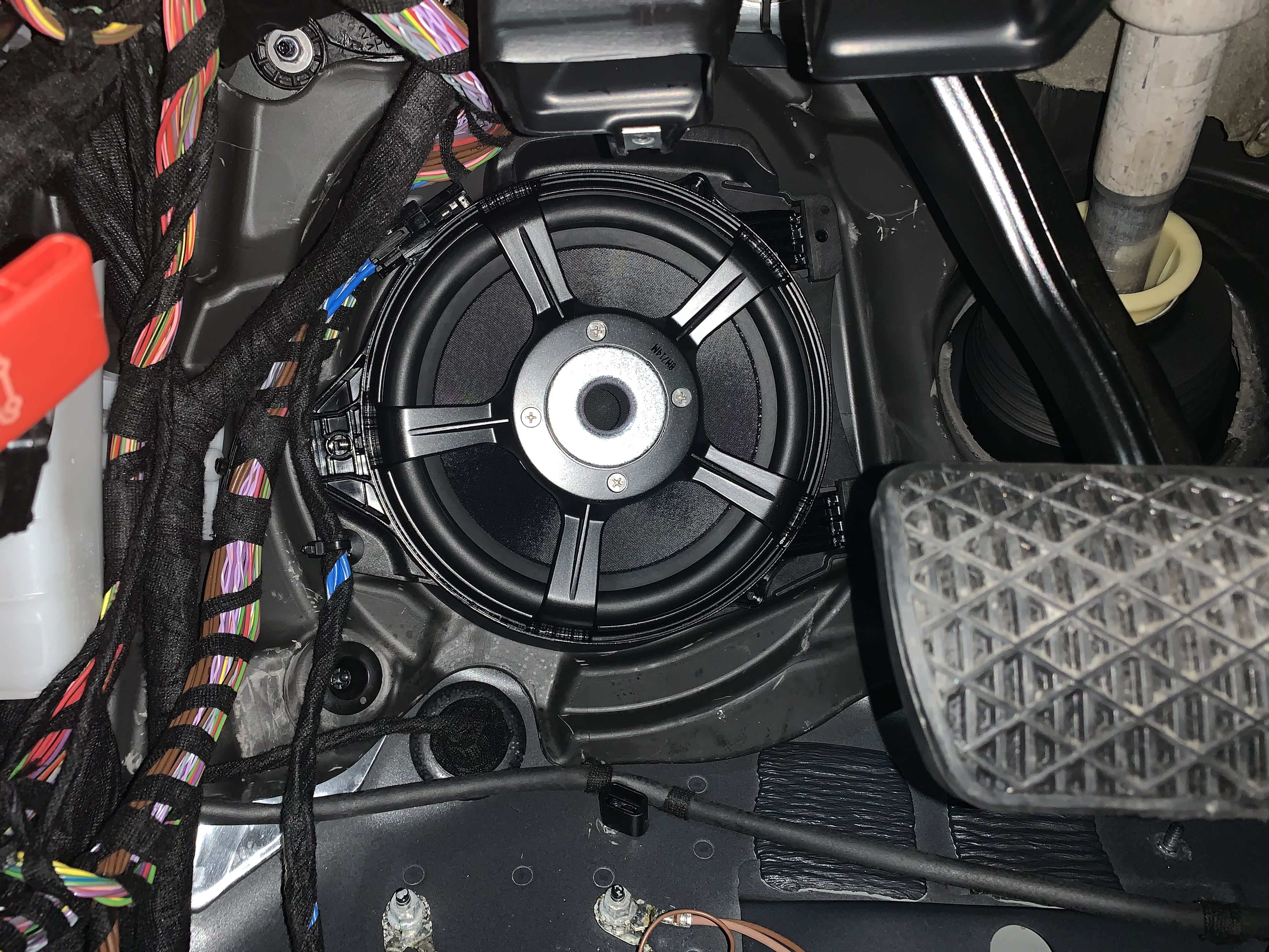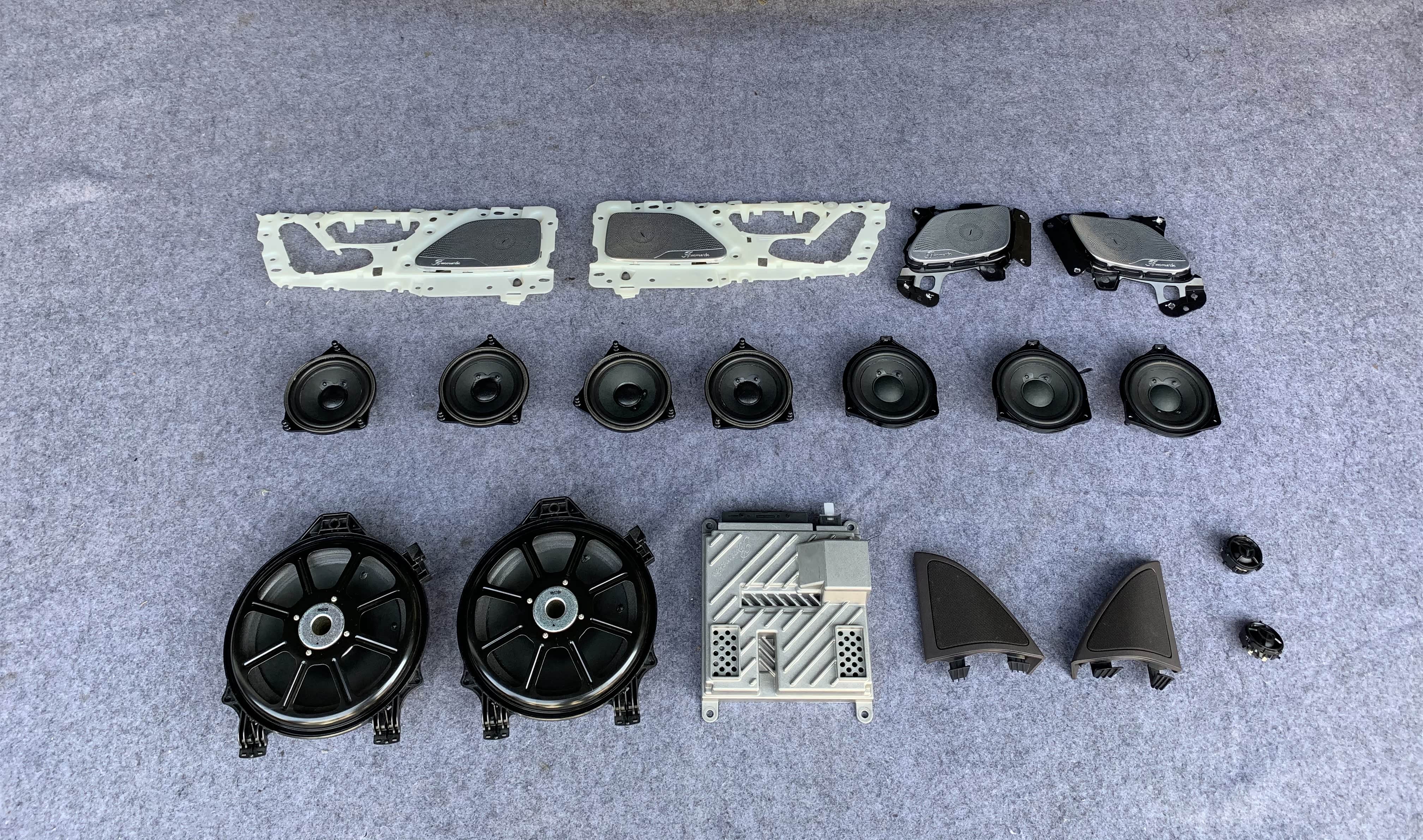 小柏林之声由13个扬声器和一个功放组成,四个中音、四个高音、两个低音、一个中置、两个环绕喇叭组成,在配置升级方面基本上都是无损安装,因为原厂预留了安装位置!