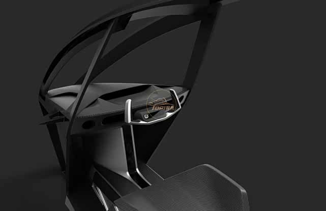 这台车可容纳两名乘客,一前一后,为了他们的安全,还配备前侧安全气囊和四点式安全带,该车总重量500kg。