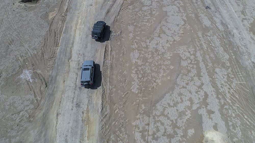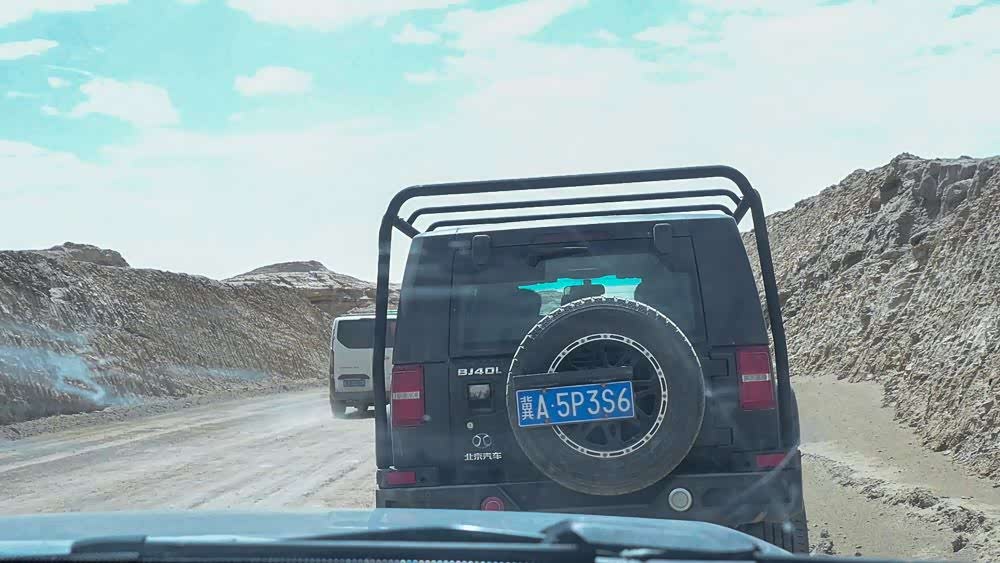 不过提醒大家一点的是,当你开这种路的时候,一定要打开车的内循环,并且关好窗户。因为我们BJ40的后面窗户没有关,所以在豁沙子的时候里面各种呛。还有一点就是,在玩儿完沙之后,关门和关后备厢的时候一定要小心,不然很有可能洒你一身的沙。