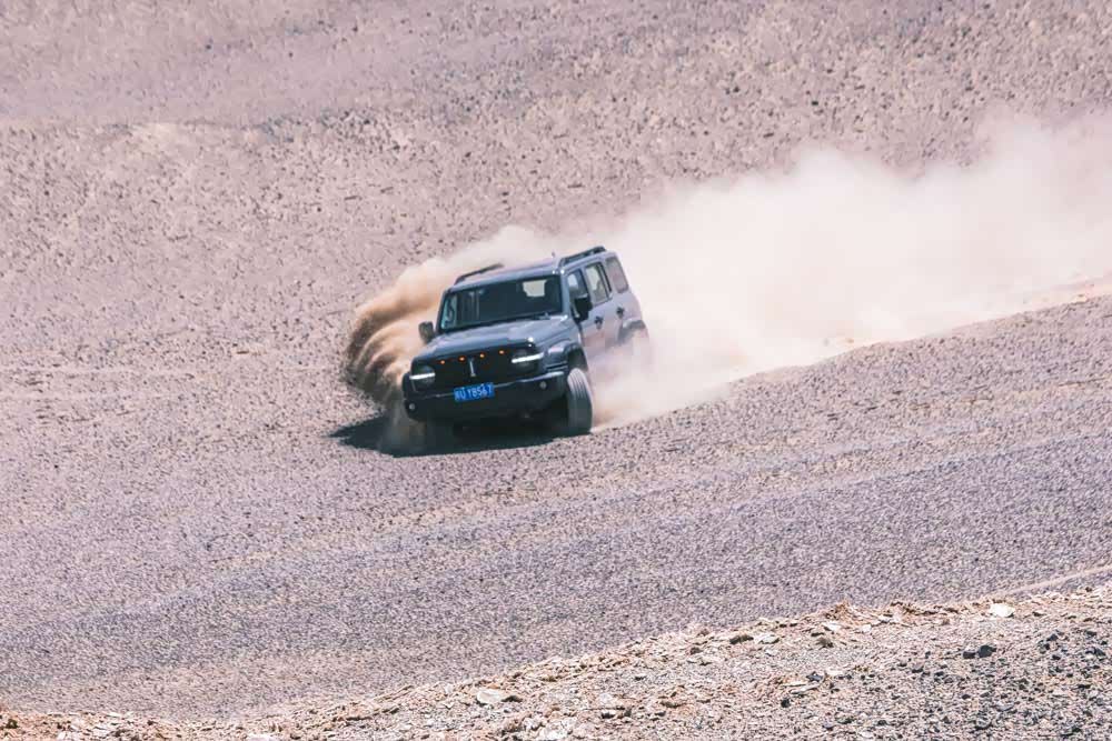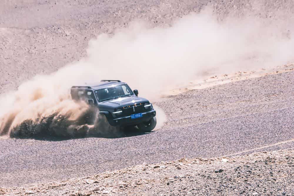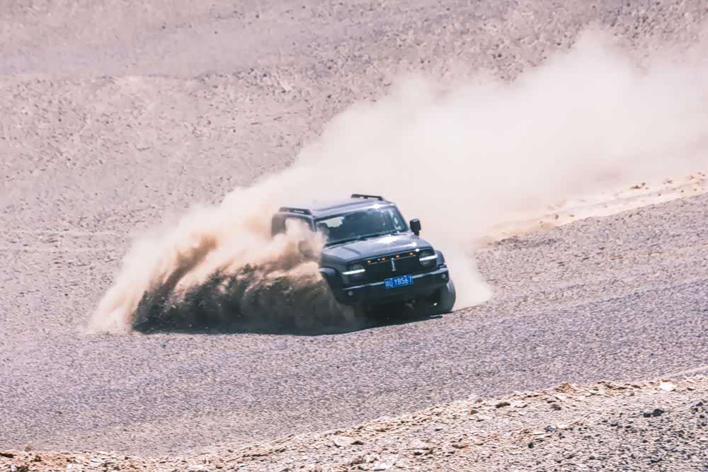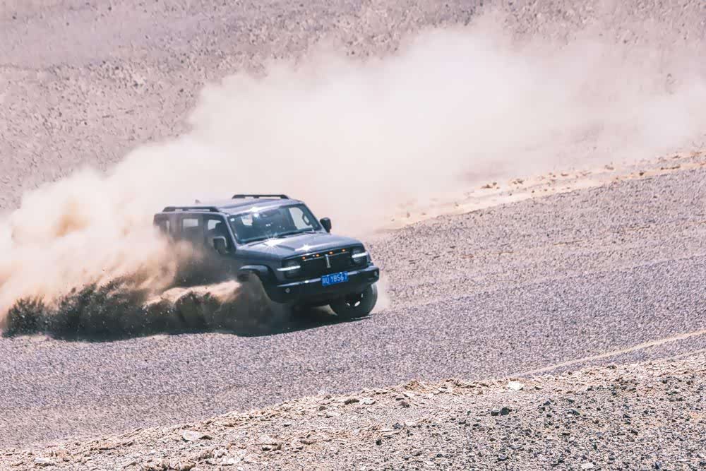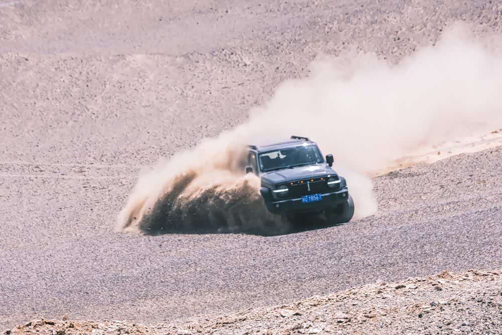 在这种沙地里面,豁这台坦克300的时候,还真的找到了一种飘起来的感觉。这种状态还是挺棒的!卷起沙土,这种景象才适合这台车嘛,两个字,绝了!