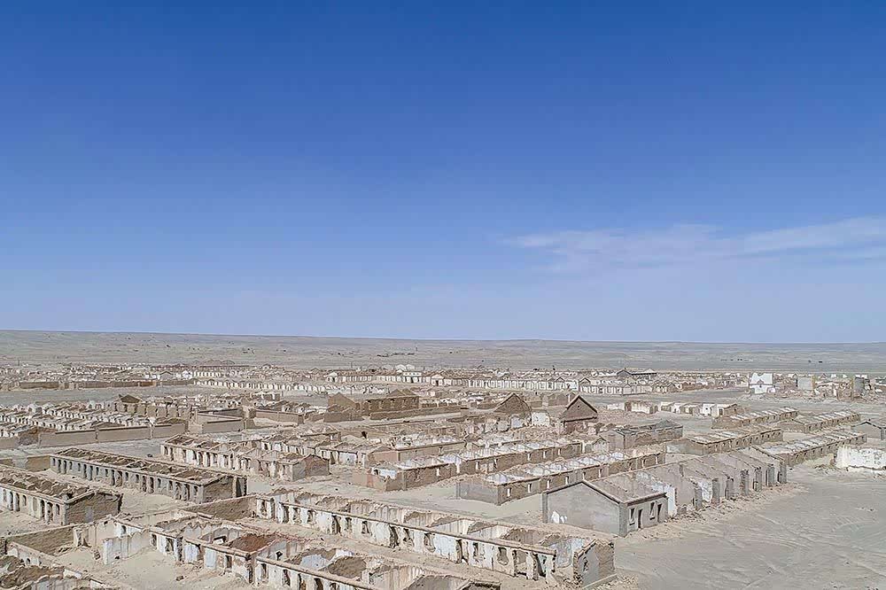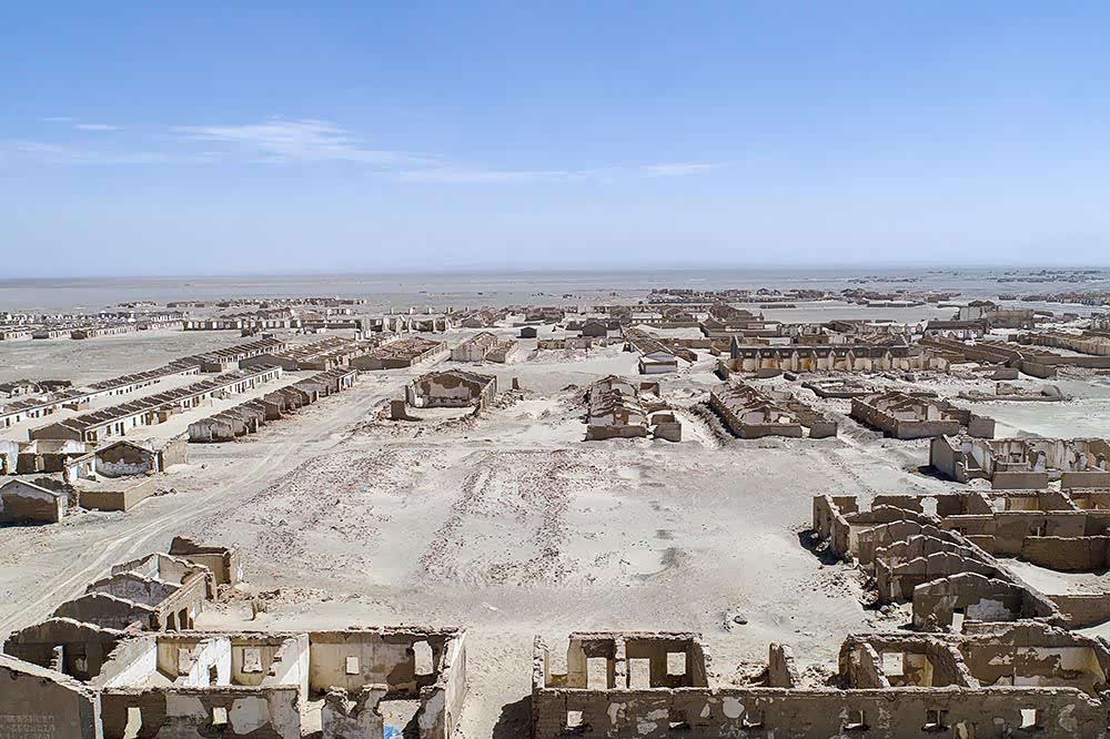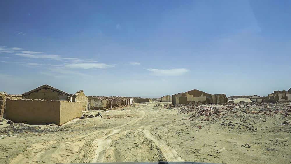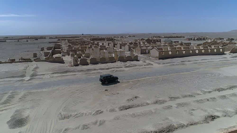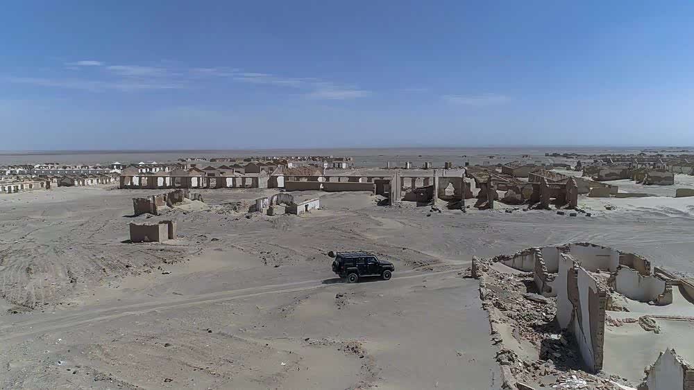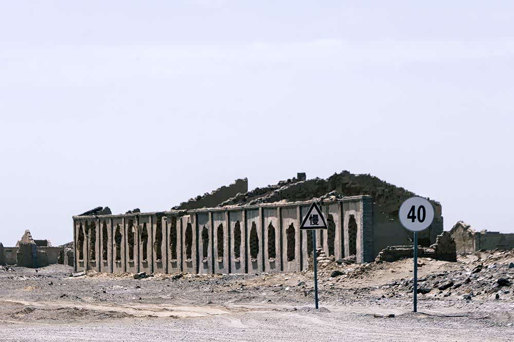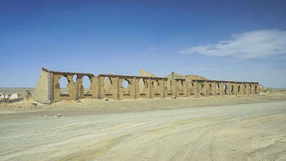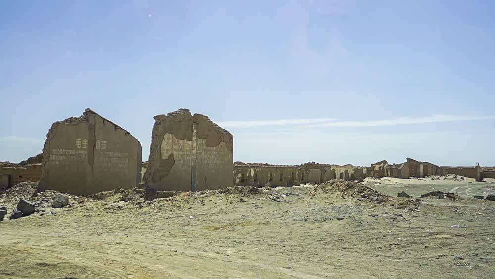 因为我们到达了冷湖的一个石油小镇遗址,这里建筑因为风沙的侵蚀,特别老旧,再配合四周荒芜的景色,看着就很有年代感,也蕴藏了很多时代的回忆。