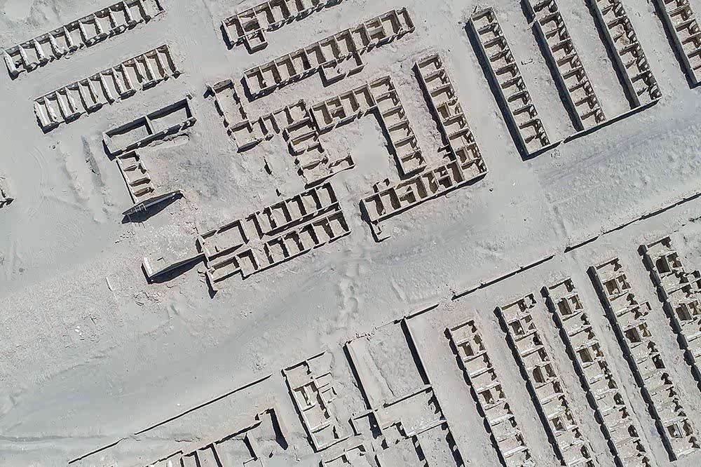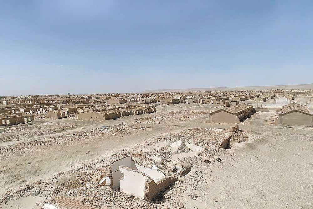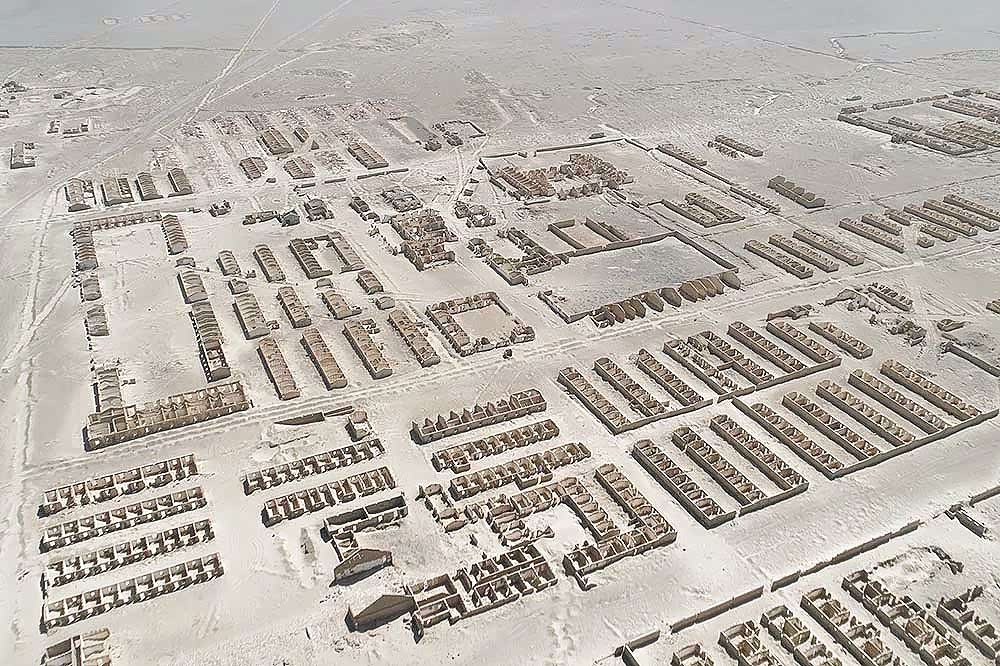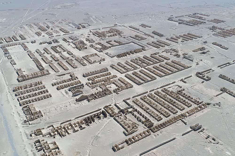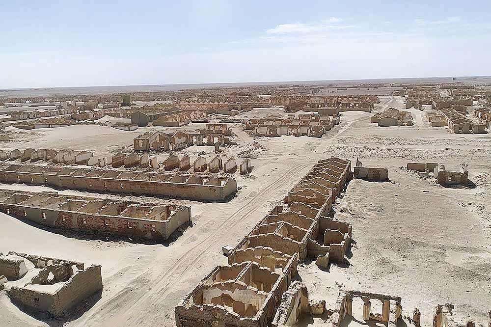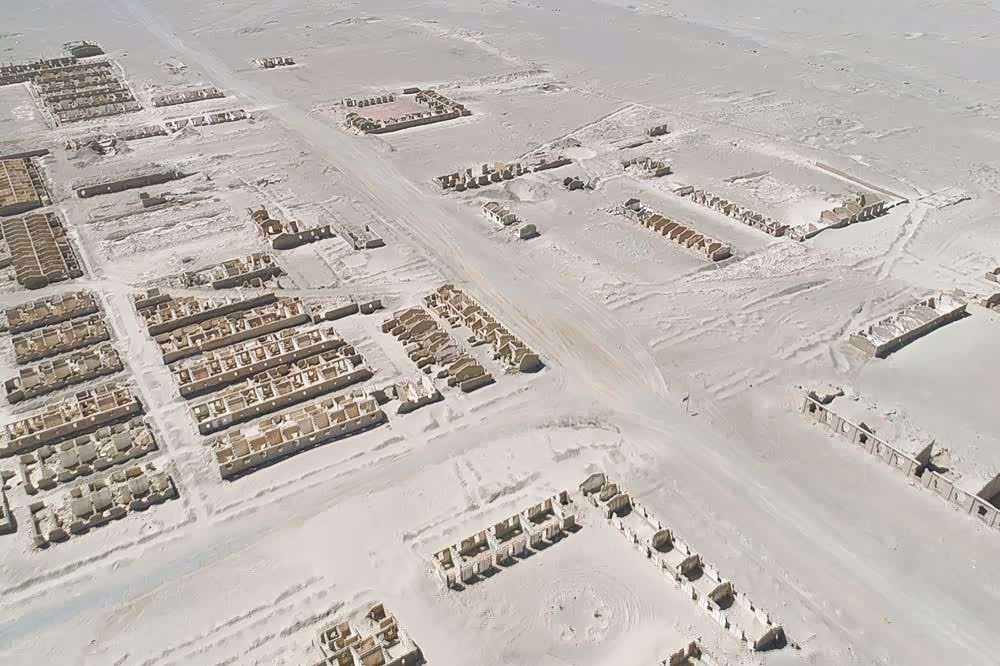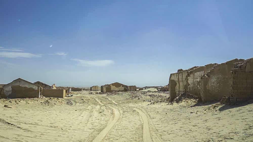 因为我们到达了冷湖的一个石油小镇遗址,这里建筑因为风沙的侵蚀,特别老旧,再配合四周荒芜的景色,看着就很有年代感,也蕴藏了很多时代的回忆。