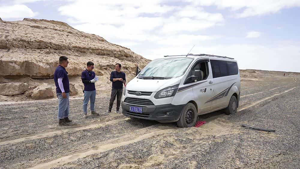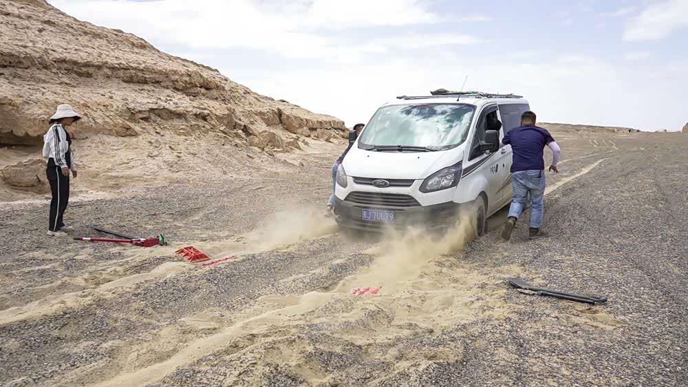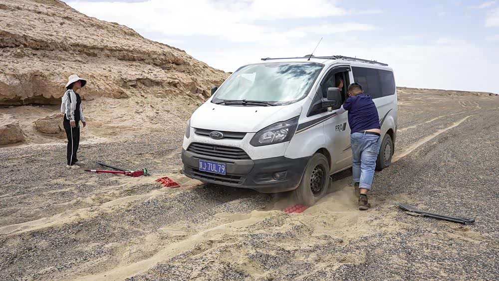 并且这种路段当你开起来的时候,真的会感觉到一旦你的速度下来,你的轮胎就已经陷到里面了。