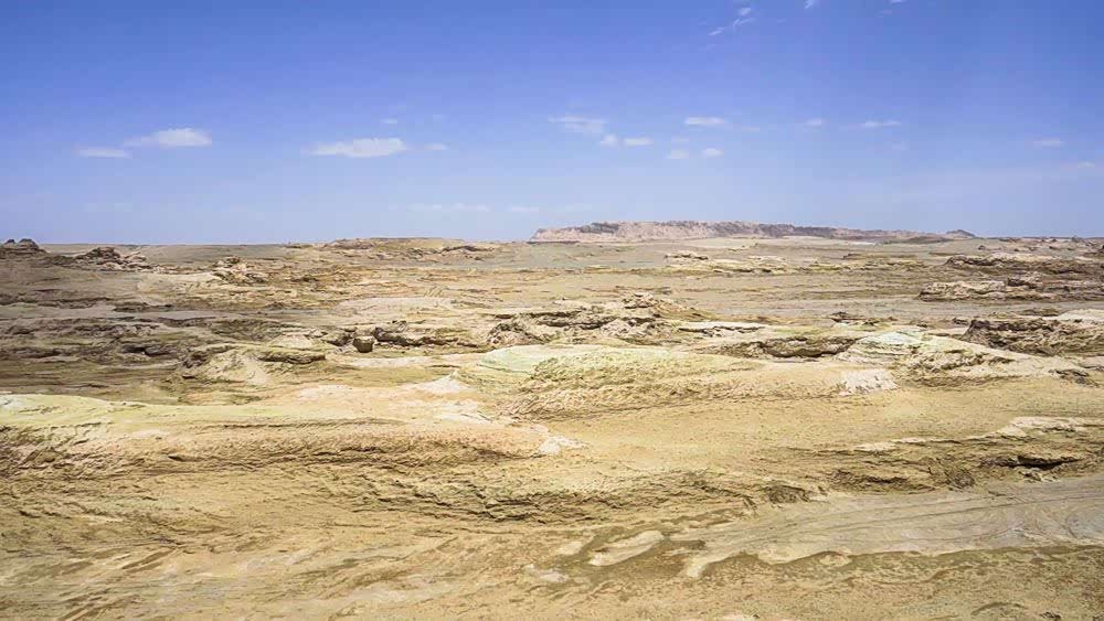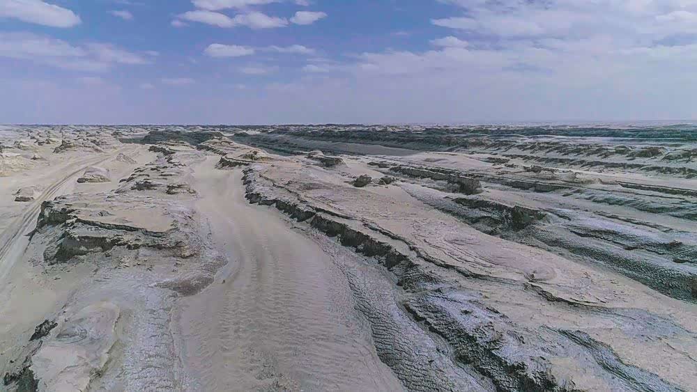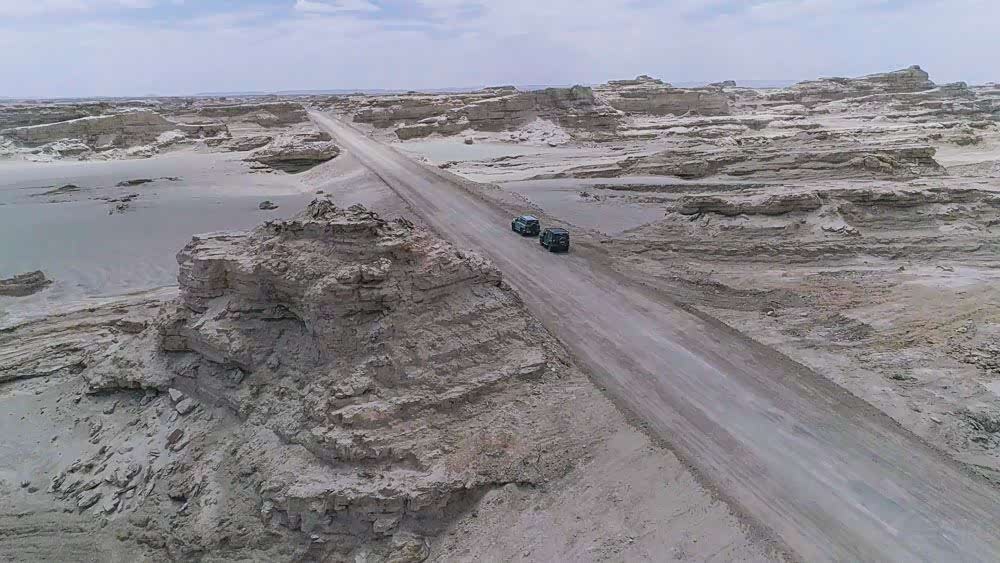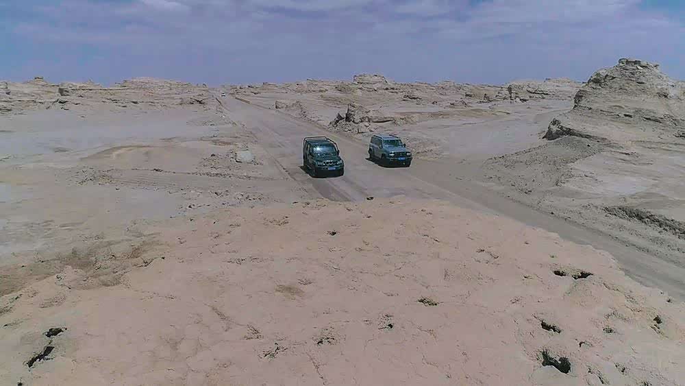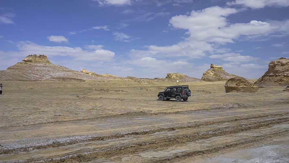 而在路边的时候,我们也是找到了一个缺口,一条有着车辙的烂路,开了上去之后想在高地领略一下这种“一览雅丹小”的风景。开着4H,把车给撸上去之后,景色真的就是太美了!