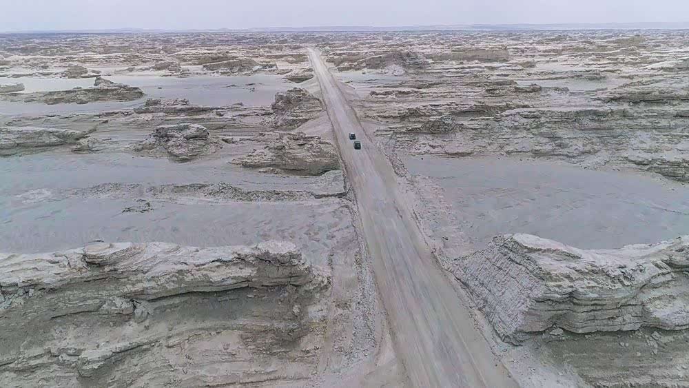 在打卡了奇特建筑物和零号界碑之后呢,我们开始了今天的行程,首先往火星一号公路腹地的路况全部都是那种比较严重的搓板路。
