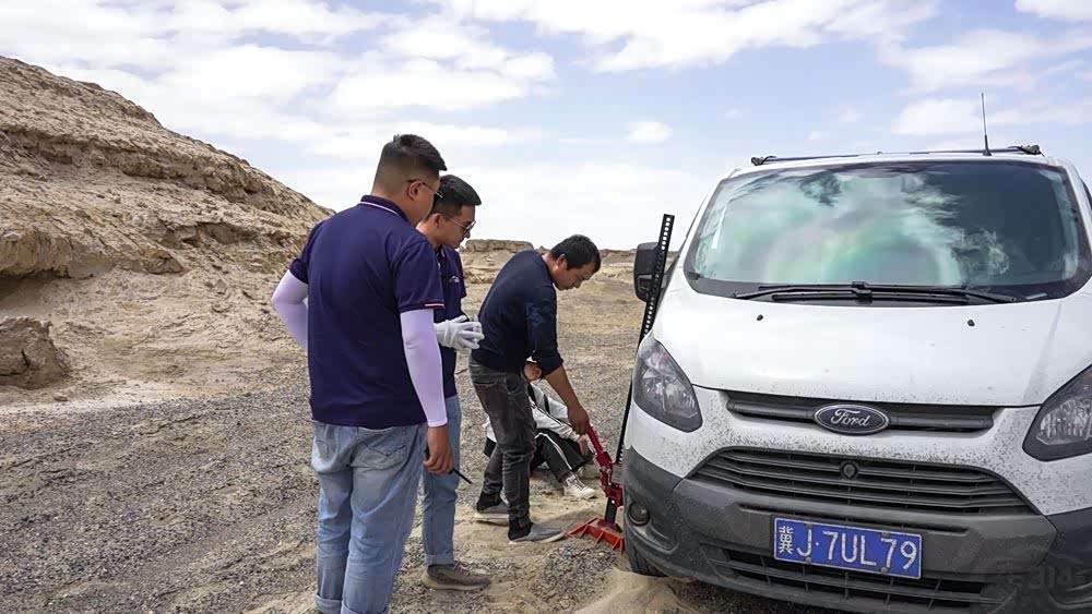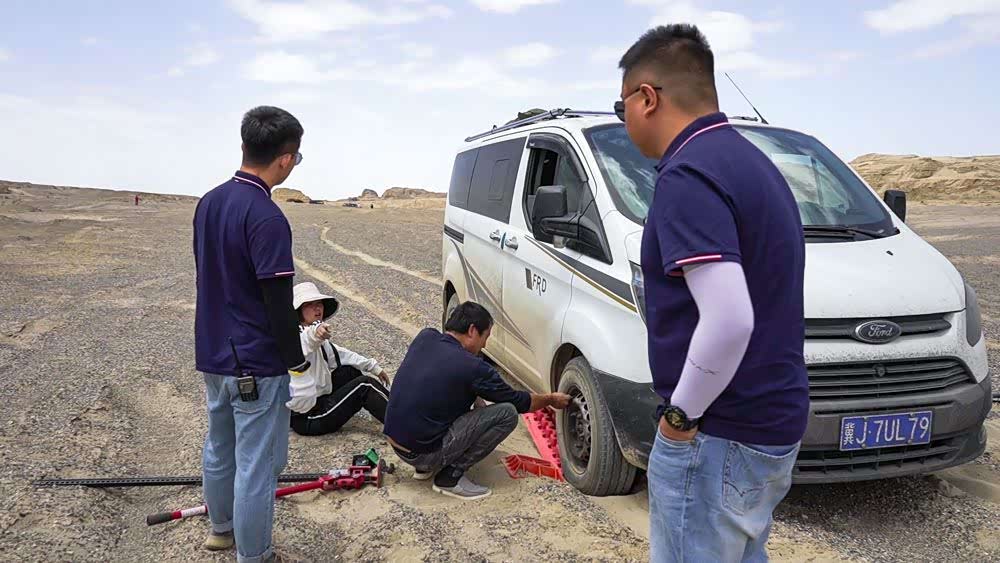 也就是在高处的时候,我们看到不远处有一台单独行动的车陷车了。讲个笑话,开着硬派越野车的快乐就是看见一个拖一个。随即,我们也是前往那个陷车的哥们位置,帮忙了。