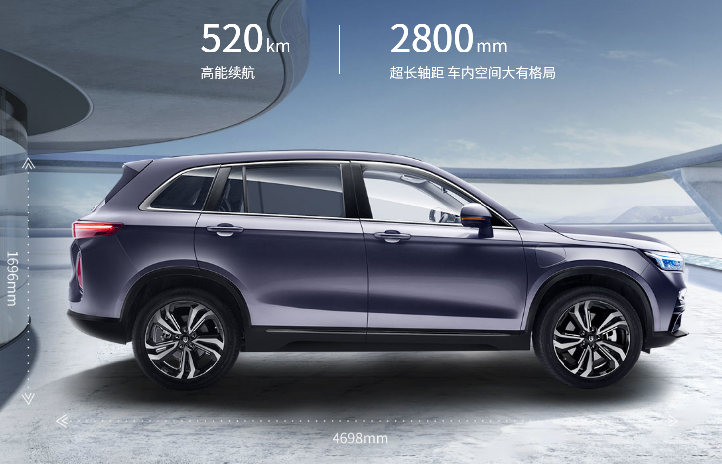 侧面的整体造型设计相对保守,大部分线条平直,比较显眼的中间位置有一条腰线从头灯呈上扬姿态贯穿到尾灯,底部是黑色的塑料包边,车门板下方带有小小的内凹设计,五辐样式的轮圈与车身整体相得益彰。创维EV6定位纯电中型SUV,长宽高分别为4698*1908*1696mm,轴距2800mm。