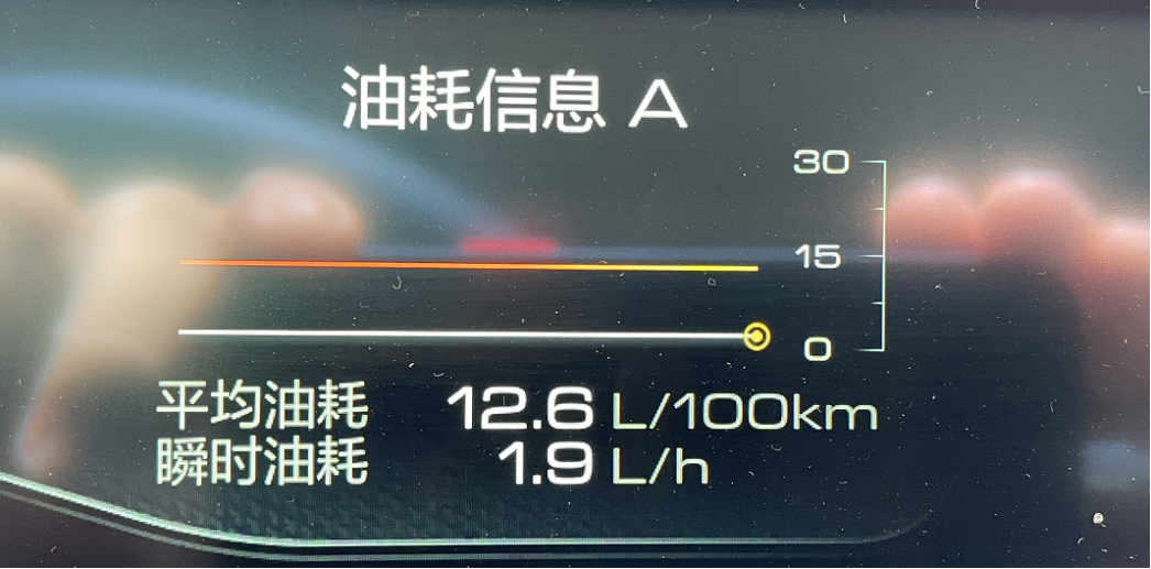 我想可能很多人关心城市版的油耗,我清零跑了跑,杭州一般拥堵的路况下。当天气温35度以上,百公里油耗从9.9L到11.8L到基本稳定在12.6L左右。这样的定位,可以接受。这个油耗测试不准,就是基本概念就行。