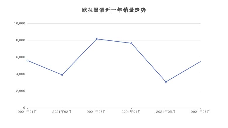 欧拉黑猫的售价区间为6.98-8.48万元,在2021年6月份的销量为5469辆,同比增长132.03%,环比增长78.96%,在5-10万两厢车中销量位列第7。相比于5月,欧拉黑猫的销量增加了2413辆。
