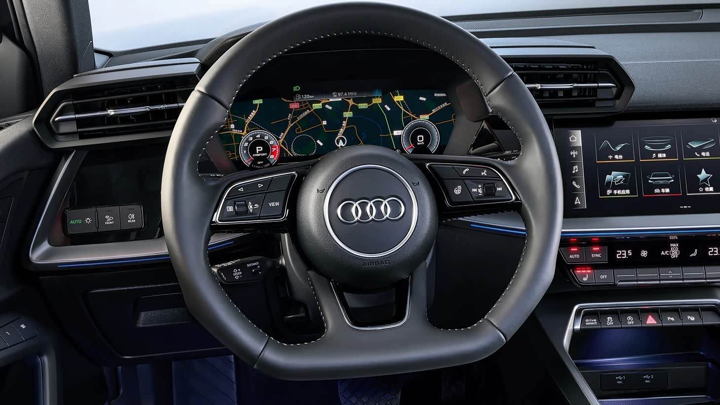 进入2021款奥迪A3车内,依旧是时尚与科技感,由于是全新车型,内饰也进行了全新设计,两厢版与三厢版在内饰方面几乎一致,只是运动型采用了平底的方向盘;让人印象深刻的是,12.3英寸液晶仪表盘与10.1英寸中控大屏的组合,能够显示非常丰富的信息,同时显示效果极佳,整个环抱式的中控台,功能划分清晰,按键星罗棋布,显示了奥迪高超的装配工艺;