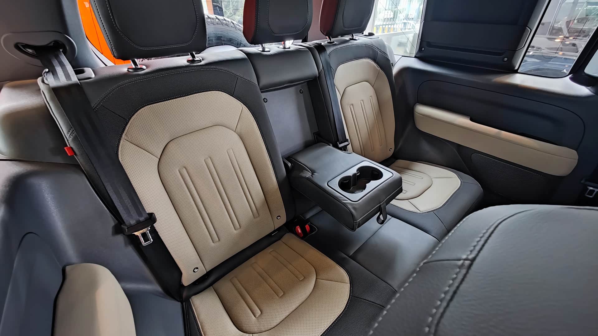 由于侧面少了两扇车门,进入卫士90的第二排需要放倒第一排座椅才可实现,操作起来有些掉档次,每个步骤都是手动完成,高情商的人会说这叫纯粹,低情商的则直接丢出一句:就这?