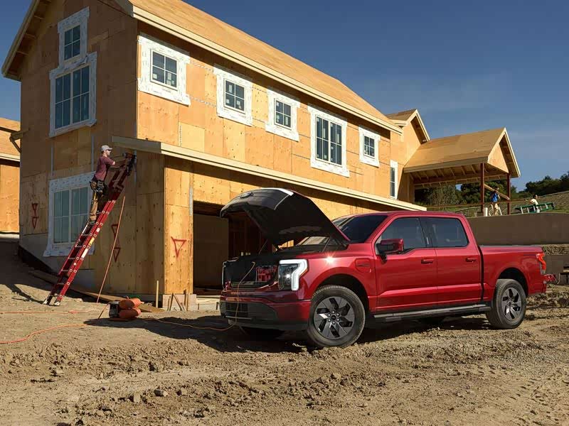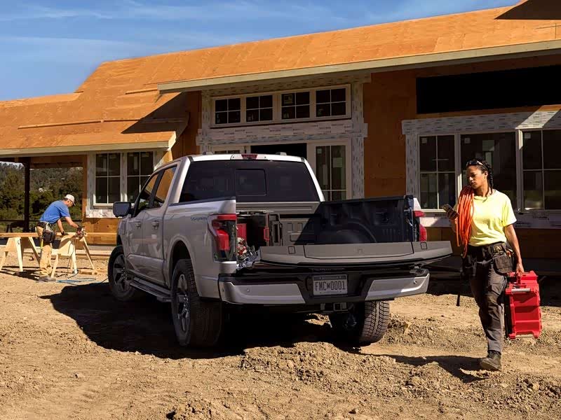 福特F-150 Lightning供电能力不限于家庭,借助增强版专业车载发电系统,用户可以利用F-150 Lightning内置的电源插座直接为户外的各种电动工具、电子产品和电器供电。基础版标准输出功率为2.4kW,Lariat和Platinum系列车型输出功率为9.6kW,前备箱可提供输出功率2.4kW,驾驶室和后斗配备的插座可提供最大输出功率为7.2kW。